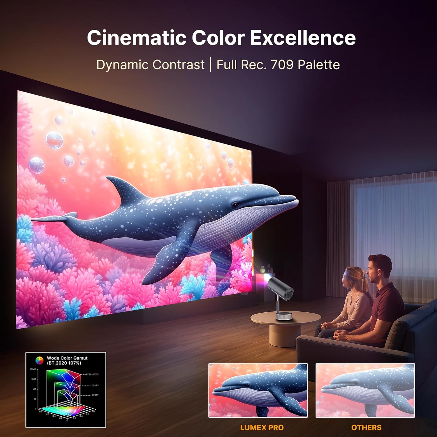 ✅【Good Bye Dark Screen | Super Bright 14000 Lumens】: supports 1080P, 4K and a contrast ratio of 20000:1, our mini projector shines bright with 14000 lumens, delivering vibrant visuals in any room, at any time of day. It’s the perfect smart projector for living rooms, bedrooms, or even backyard movie nights.