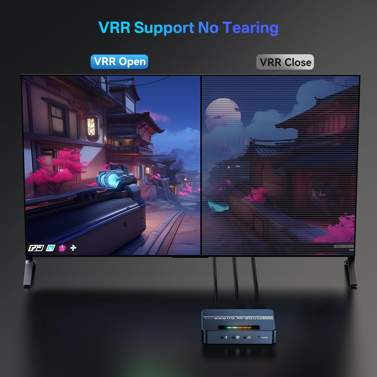 VRR Support And High Frame Rates: No tearing game graphics any more. Perfect for your game consoles including Xbox Series X/S, Xbox One, PS5, PS4/Pro, PS5, and Switch. NOTE: Make sure your device support VRR!