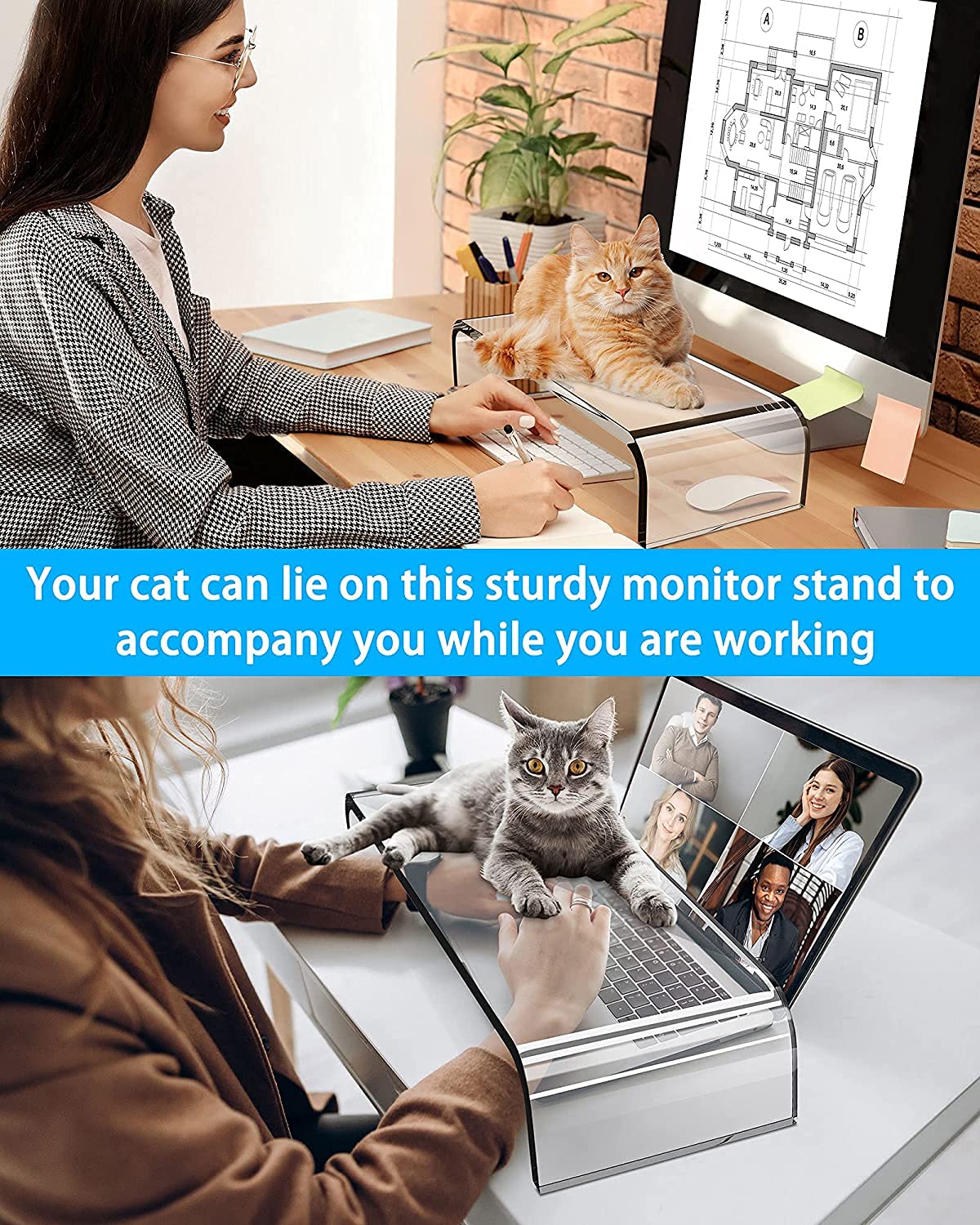 ✅ Premium Acrylic Monitor Stand is the perfect complement to work station portability when you want to perform your tasks in multiple locations. An attractive addition in any home or commercial office, it features a sparkling-clear acrylic design that will seamlessly blend in with any interior design. This extremely durable stand is expertly crafted using rugged acrylic construction that will travel well to any location. Although it’s lightweight at only 7.5 pounds, this material is extremely b and shatter-resistant to ensure long-term strength and reliable use. Even if it falls and hits the ground, it won’t break! .. ✅ At the desk, we can serve as a sturdy support for your laptop, monitor or printer. The perfectly sized support providing a flat platform for your computer equipment with welcome storage space underneath for desktop essentials or sliding your keyboard out of the way.