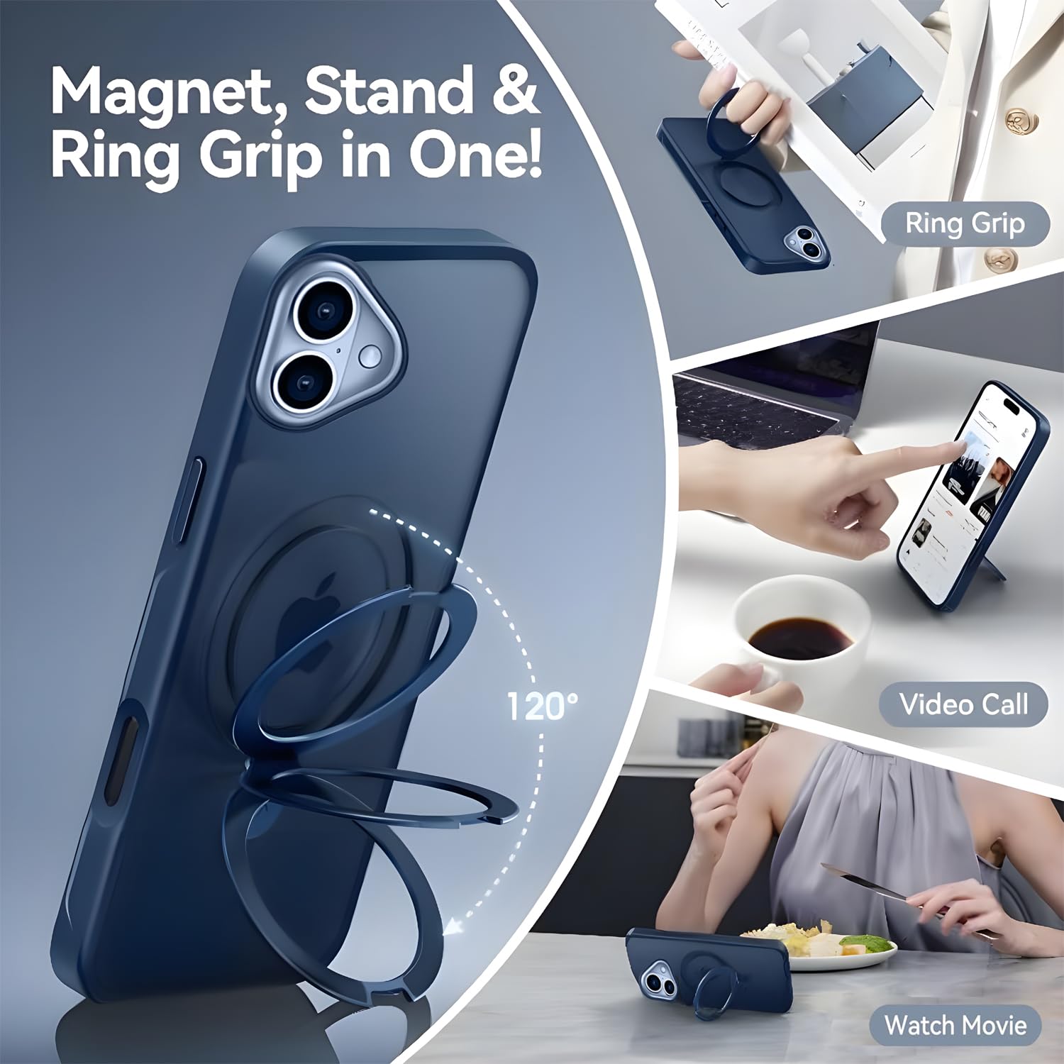 🔹 Protect your iPhone 16 in style with the Aibex Shockproof Back Cover, designed for those who demand both functionality and sleek aesthetics. Featuring a rotating ring kickstand, this case allows for effortless hands-free viewing in any orientation. The built-in MagSafe-compatible magnetic ring ensures a secure and reliable attachment to MagSafe chargers and accessories, making everyday charging and use seamless. Crafted with a rugged armor build, the case offers enhanced shock absorption while maintaining a slim profile that’s easy to pocket. Its frosted matte translucent finish provides a premium look while resisting fingerprints and showcasing your phone’s original color. Precision cutouts allow full access to all ports, buttons, cameras, and speakers without the need to remove the case. This package also includes an Optics Pro Lens Protector Kit, which comes with high-quality lens protectors, dust absorber tools, and a cleaning set to keep your camera lenses in top condition. Whether you’re at work, on the go, or streaming your favorite show, the Aibex case combines style, durability, and full functionality—perfect for your daily needs.