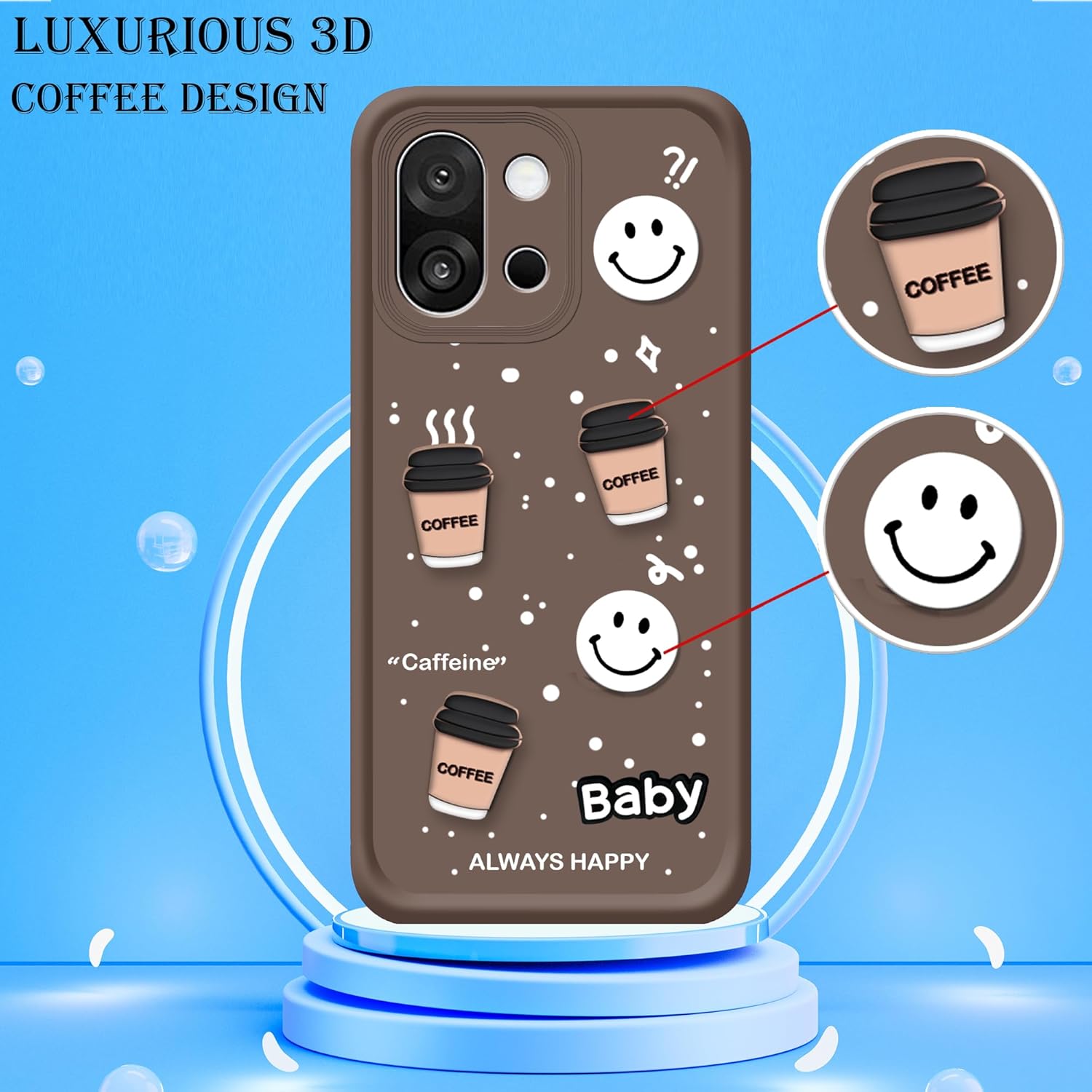 amazon basics Back Case Cover Compatible for OnePlus 13s | Cute Fun Cartoon 3D Ball | Coffee Silicone Case | Camera Protection | Body Protection | Shock Proof | Color Brown