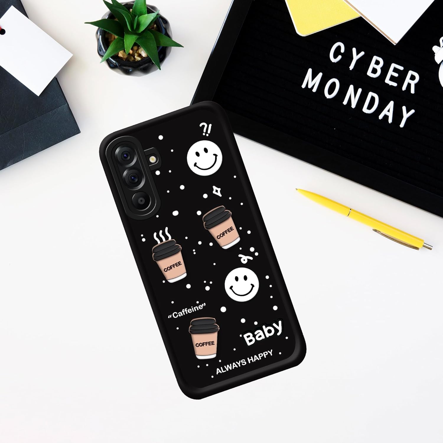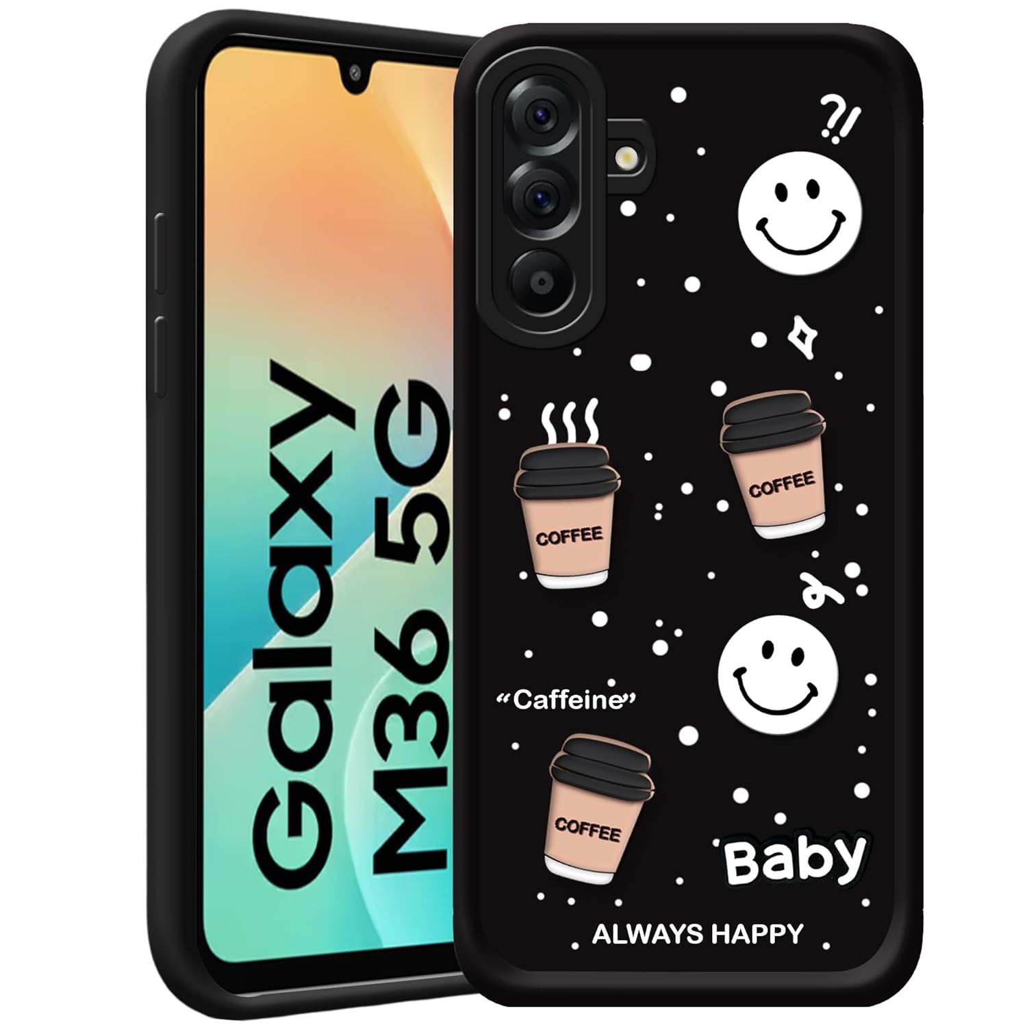 amazon basics Back Case Cover Compatible for Samsung Galaxy M36 5G | Cute Fun Cartoon 3D Ball | Coffee Silicone Case | Camera Protection | Body Protection | Shock Proof | Color Black