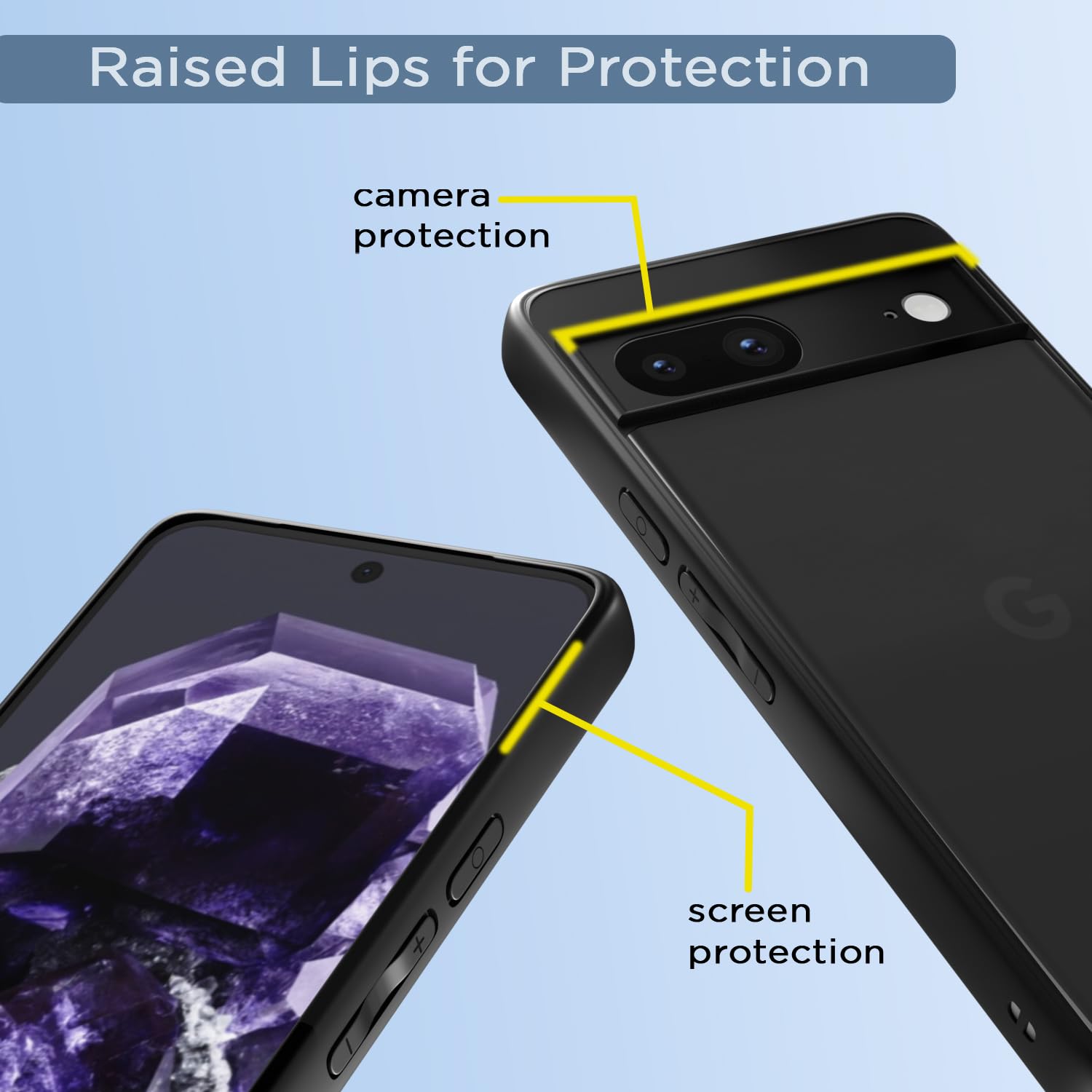 Amazon basics Back Cover for Google Pixel 8 | Shockproof Sleek Hybrid Armor Bumper Case (Black)