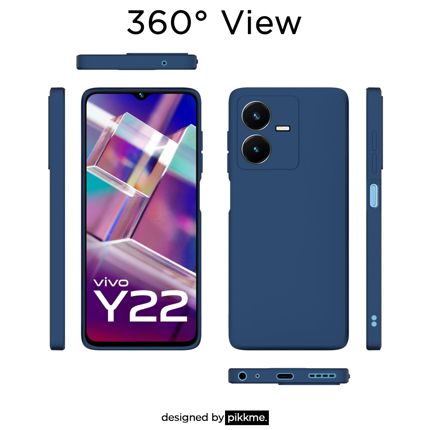Amazon Basics Back Cover for Vivo Y22 | Shockproof | Soft Matte Liquid Silicone | Camera Protection Bumper Case (Blue)
