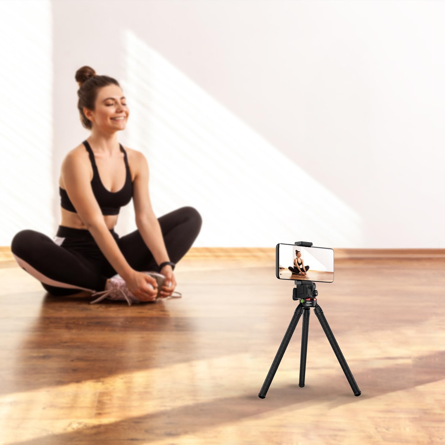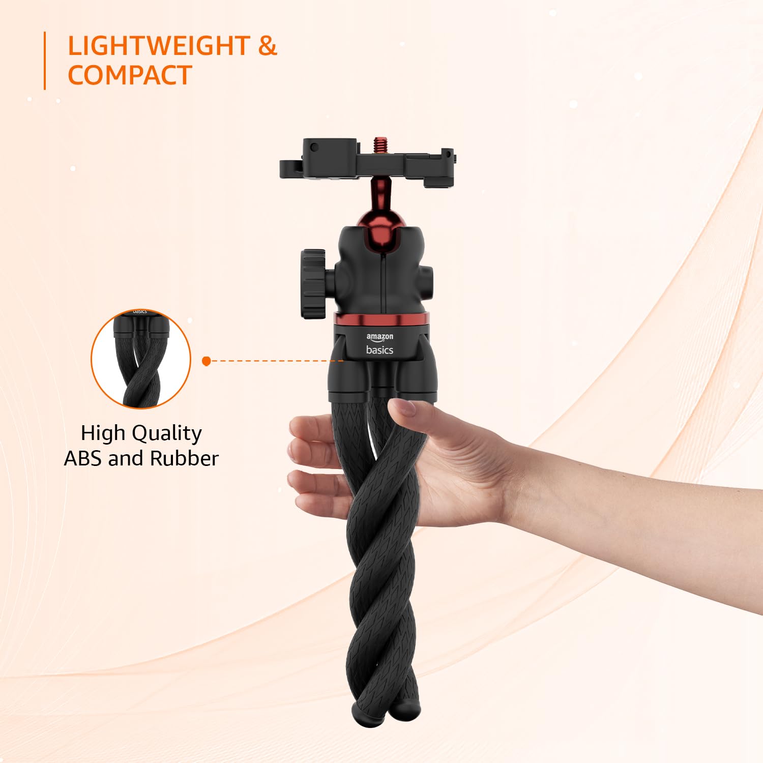 Introducing the Amazon Basics Flexible Tripod Stand with Hidden Phone Holder Cold Shoe Mount. Use this strong, sturdy, and versatile tripod to securely hold your devices with its hidden phone holder attachment that extends and adjusts up to 10 cm, without compromising on design. The tripod also features an adjustable mount that offers versatile shooting angles to match your creative direction. The legs of the tripod are flexible and ensure secure placement even in unconventional locations like tree branches, poles, and fences, giving you added creative versatility. Further, with its 360° rotatable ball head and a built-in bubble level, the tripod is perfect for a wide range of shots and ensures that your camera is properly aligned for sharp and precise shots. Compact and foldable, this lightweight tripod can be carried easily for on-site shoots and on-the-go photography, making it a valuable addition to your creative arsenal.