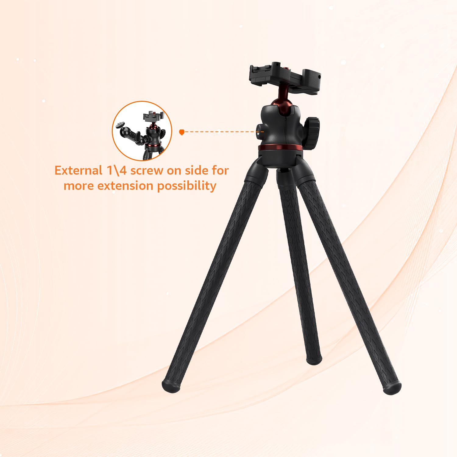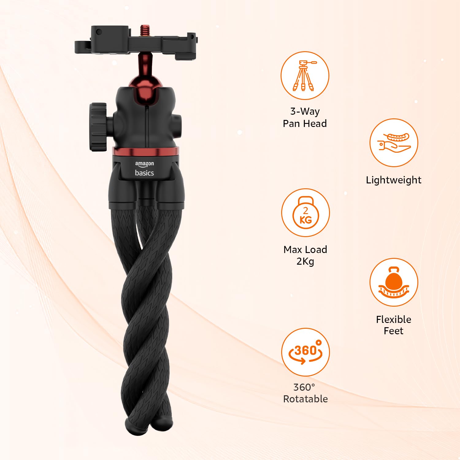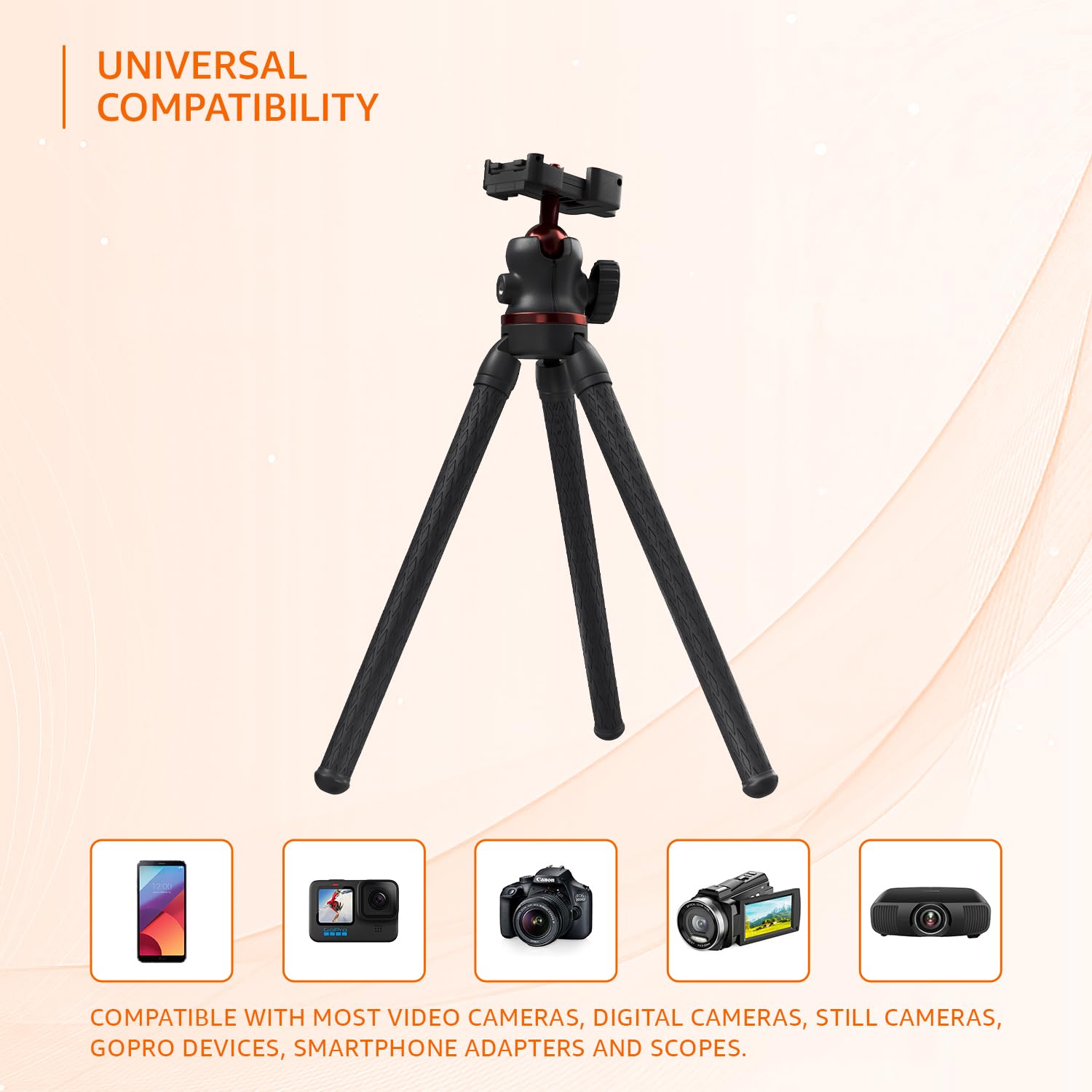Sturdy Construction: Sturdy, stable, and flexible, the tripod can hold a range of devices, including smartphones, action cameras, and lightweight DSLRs, and can be used on various surfaces. Supports load upto 2 kg.