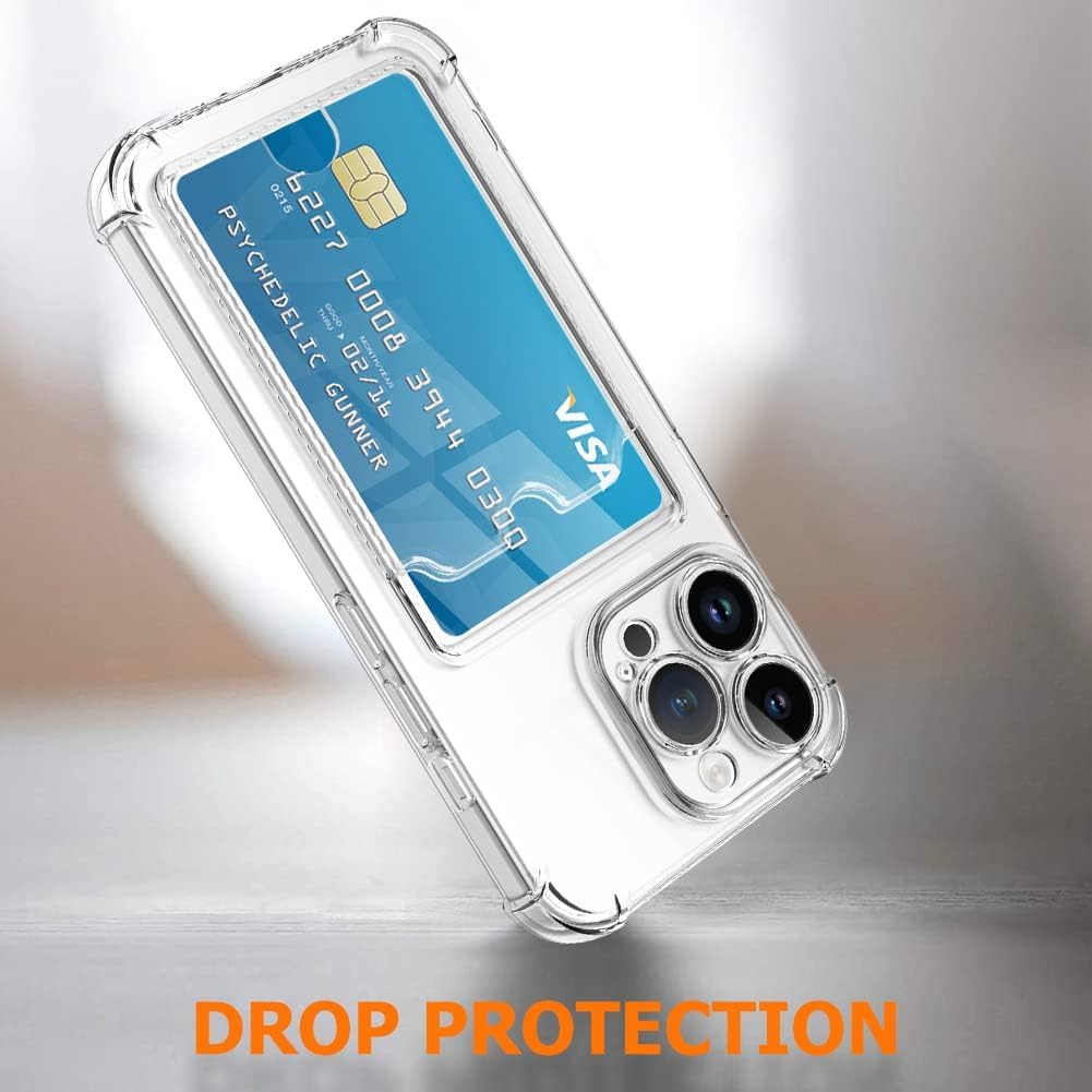 Amazon Basics Premium Shockproof Transparent TPU Back Case Cover with Built-in Slim Card Holder Wallet for Apple iPhone 15 Pro – Clear