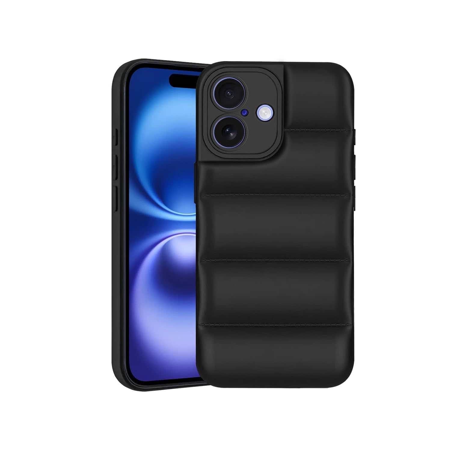 Amazon Brand – Solimo Puffer Case Camera Protection Soft Back Cover for Apple iPhone 16 – Black