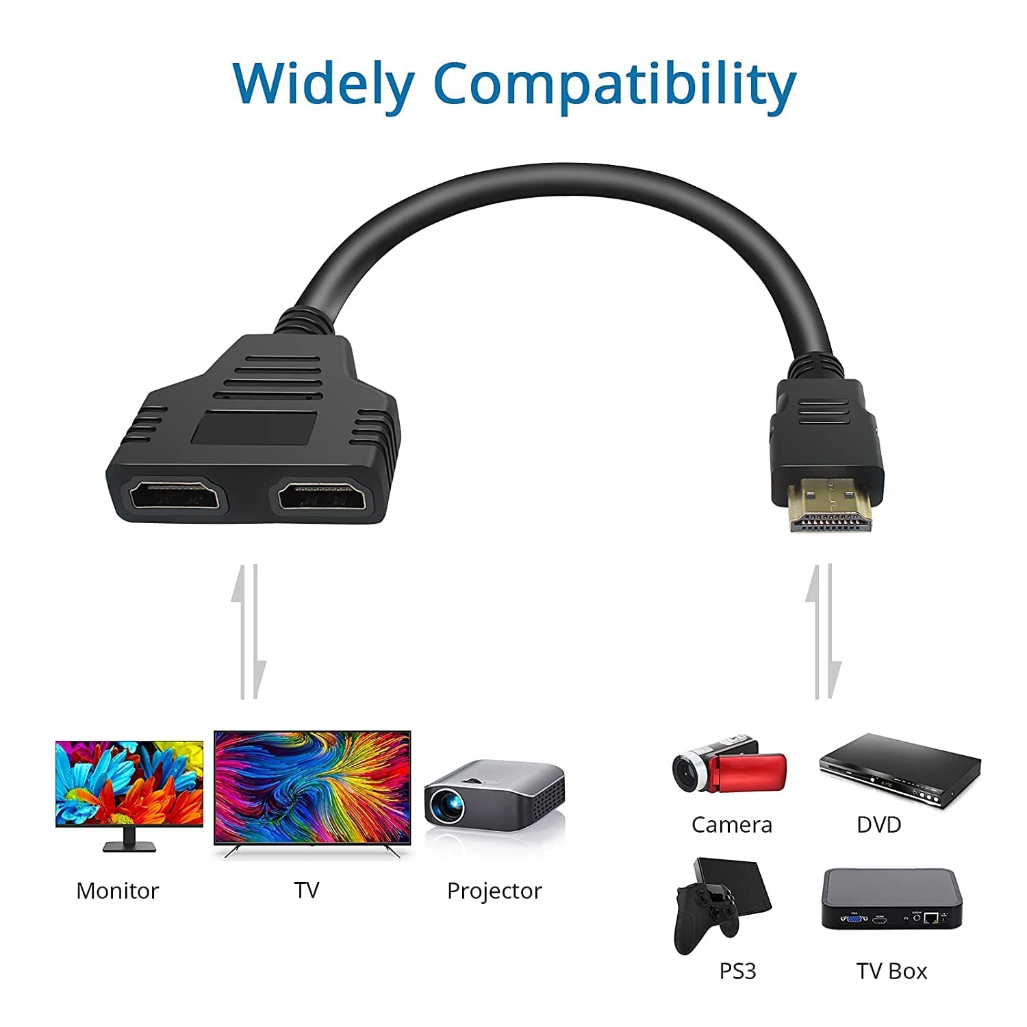 Black-R HDMI Splitter Adapter Cable HDMI Splitter 1 in 2 Out HDMI Male to Dual HDMI Female 1 to 2 Way for HDMI HD, LED, LCD, TV (in Both Display Same Screen Will Play)