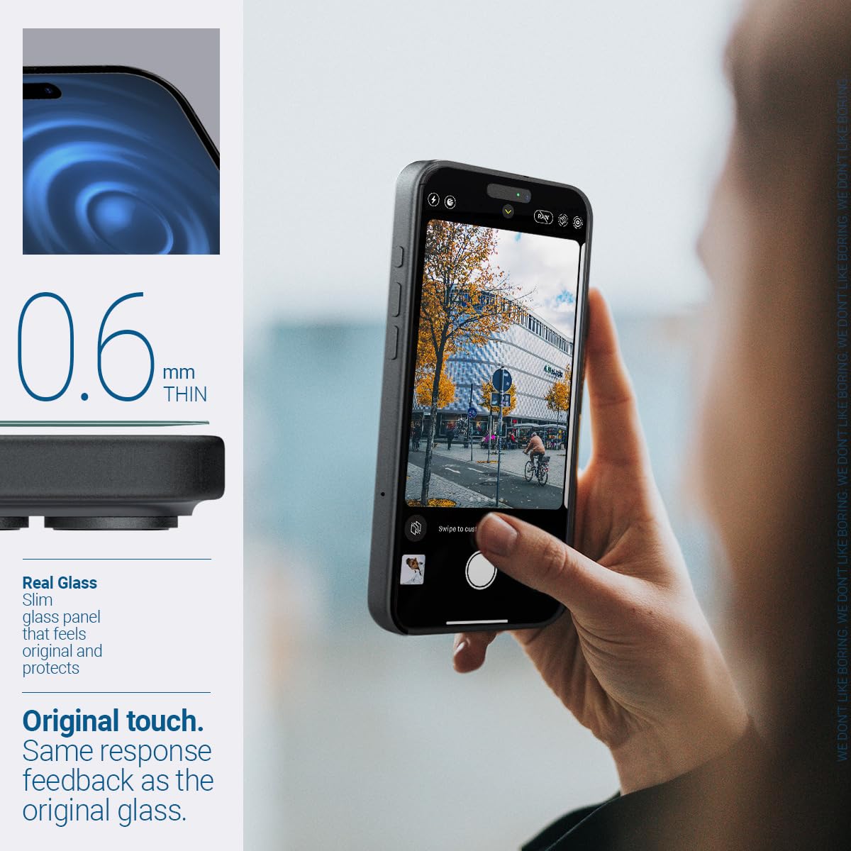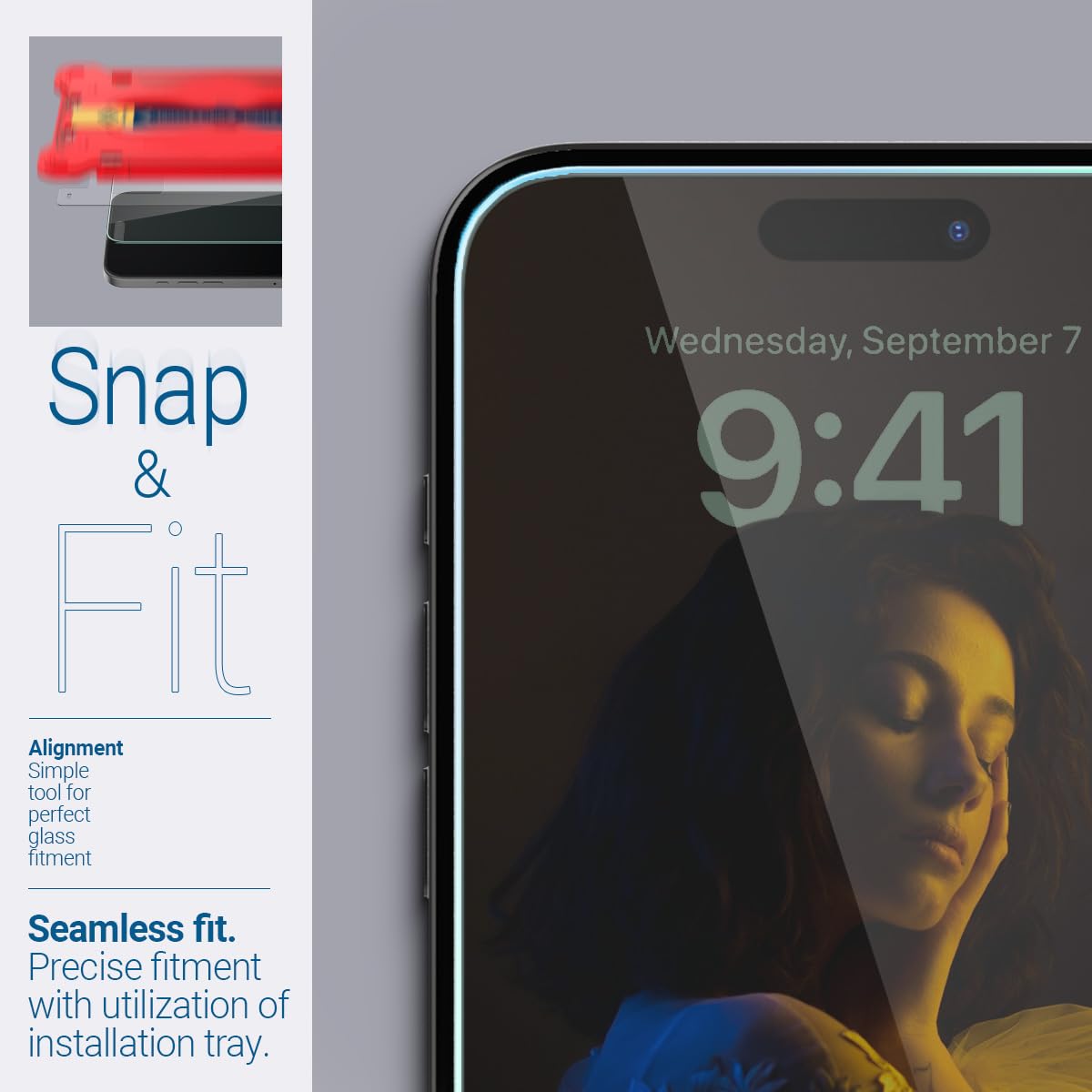 [Bubble Free & Smooth Usage] Snap Fit adheres securely to your iPhone screen with no bubbles or rainbow marks; Rounded edges of the glass ensure a smooth and comfortable user experience