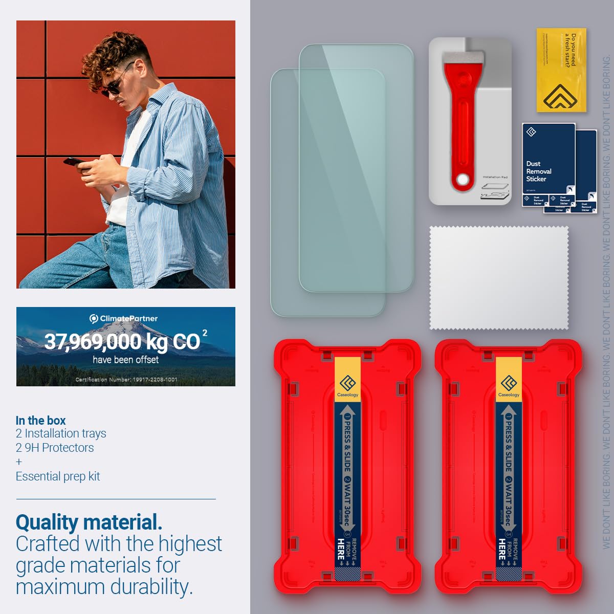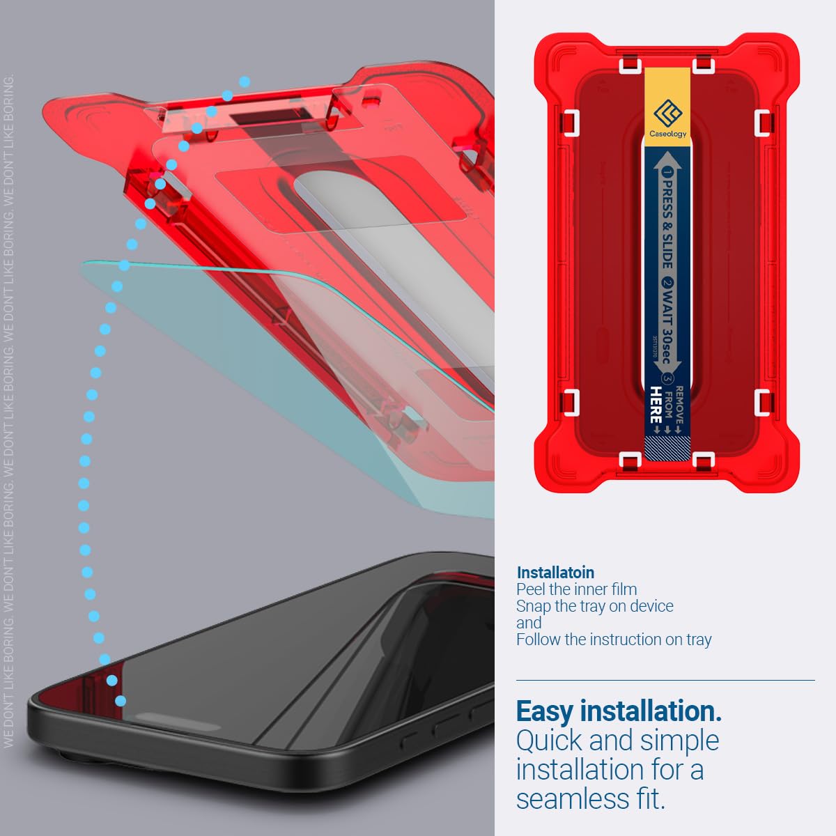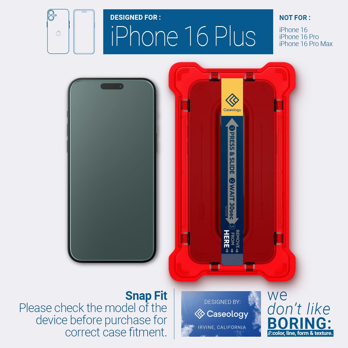 CASEOLOGY by Spigen Snap Fit for iPhone 16 Plus Screen Protector [Tempered Glass with Installation Kit] [Anti-Scratch] Screen Guard Protector for iPhone 16 Plus – 2 Pack