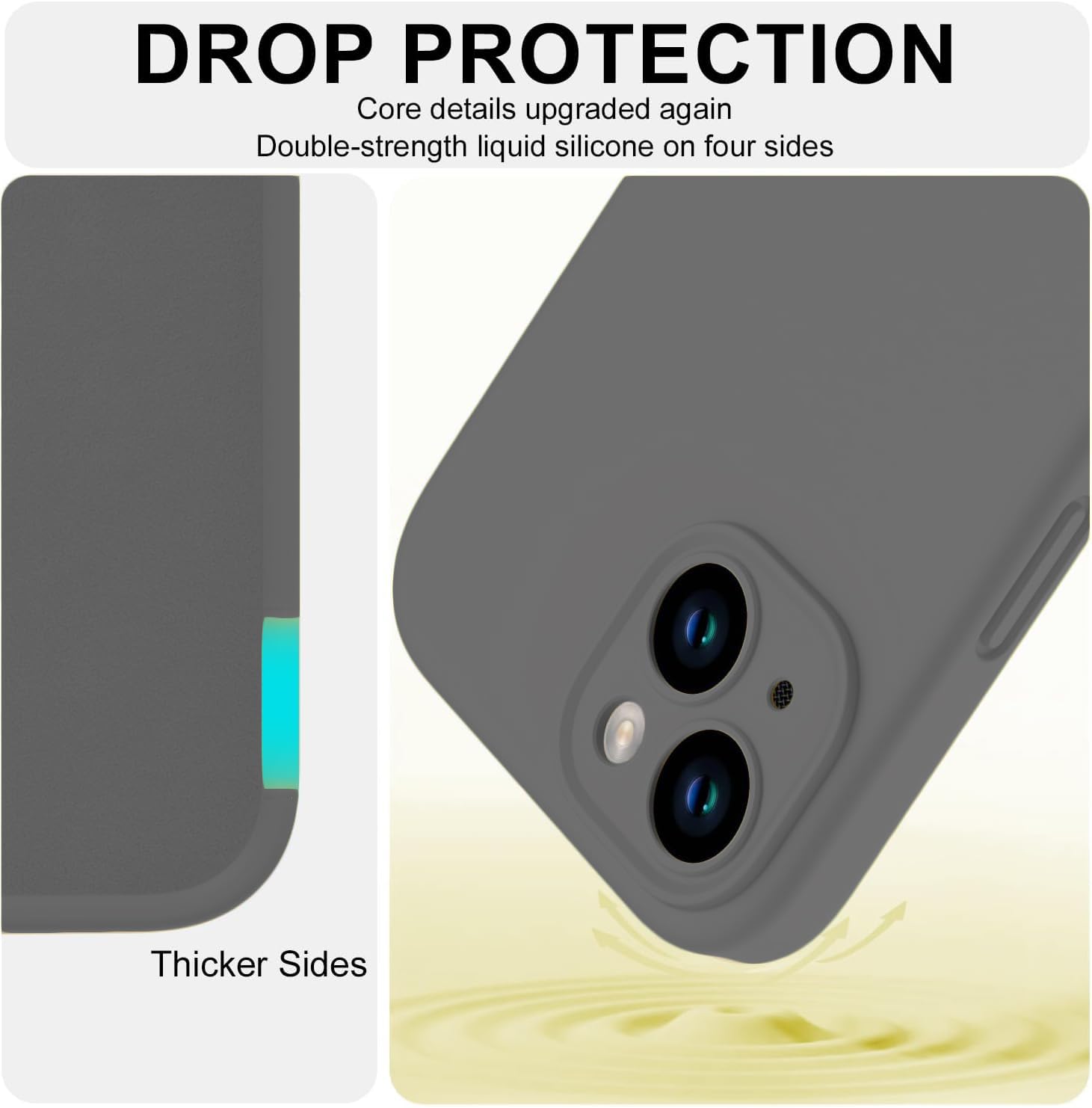 DIZORO Compatible for iPhone 15 Plus Camera Protection Case 6.7, Slim Liquid Silicone Case 3 Layers Full Covered Soft Gel Rubber Phone Case Protective Cover 6.7 Inch – Dark Grey