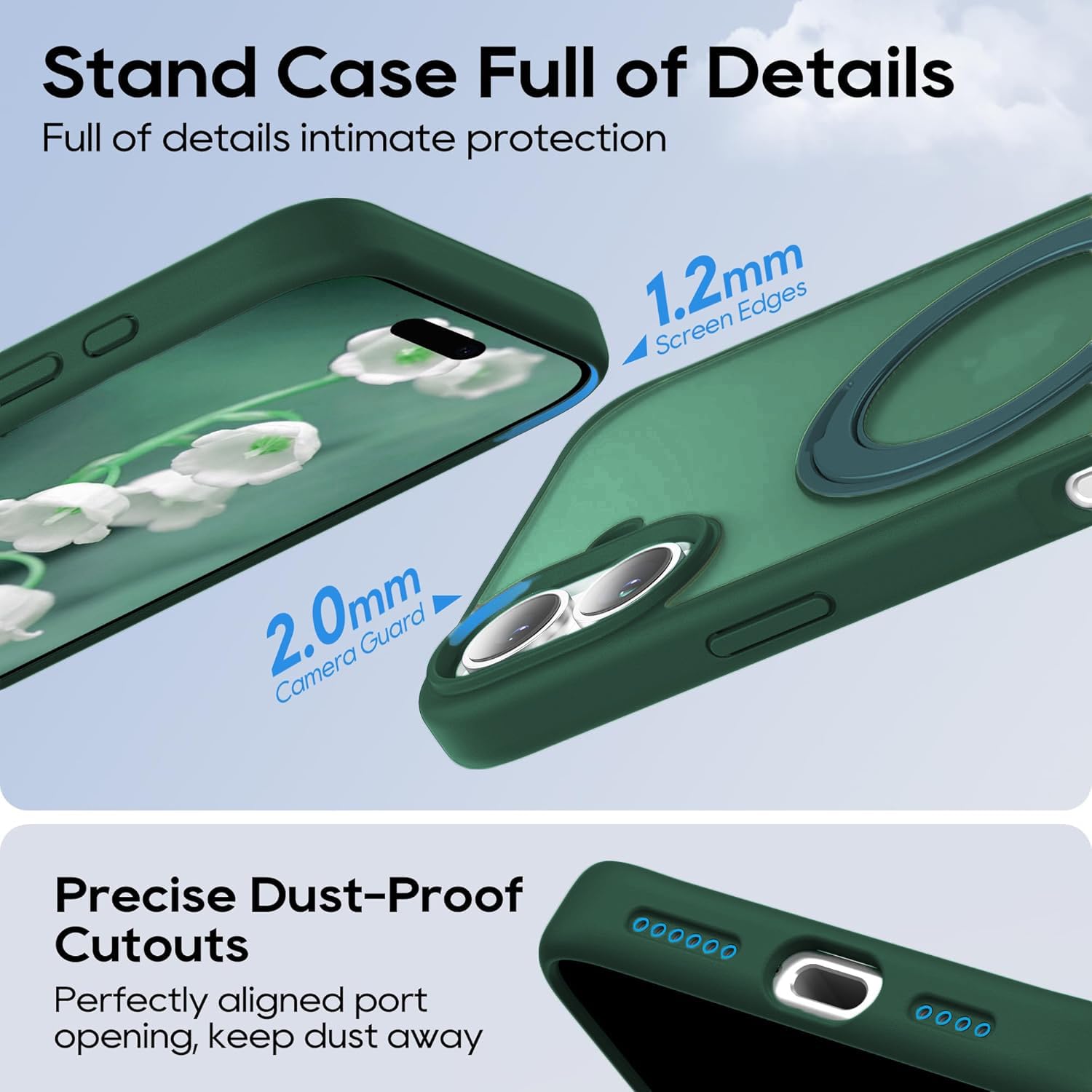 DIZORO Magnetic Ring Stand Compatible for iPhone 16 Case [Military Drop Protection] [Compatible with MagSafe] Shockproof Matte Translucent Slim Phone Case – Green