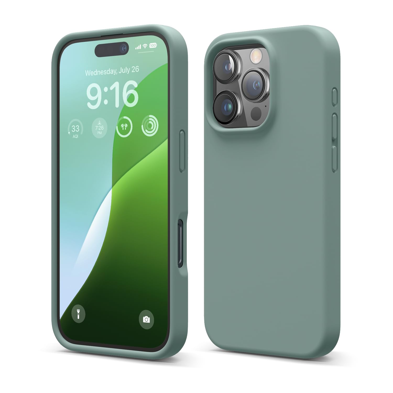 elago Compatible with iPhone 16 Pro Case, Premium Liquid Silicone Case, Full Body Protective Cover, Shockproof, Slim Phone Case, Anti-Scratch Soft Microfiber Lining, 6.3 inch (Midnight Green)