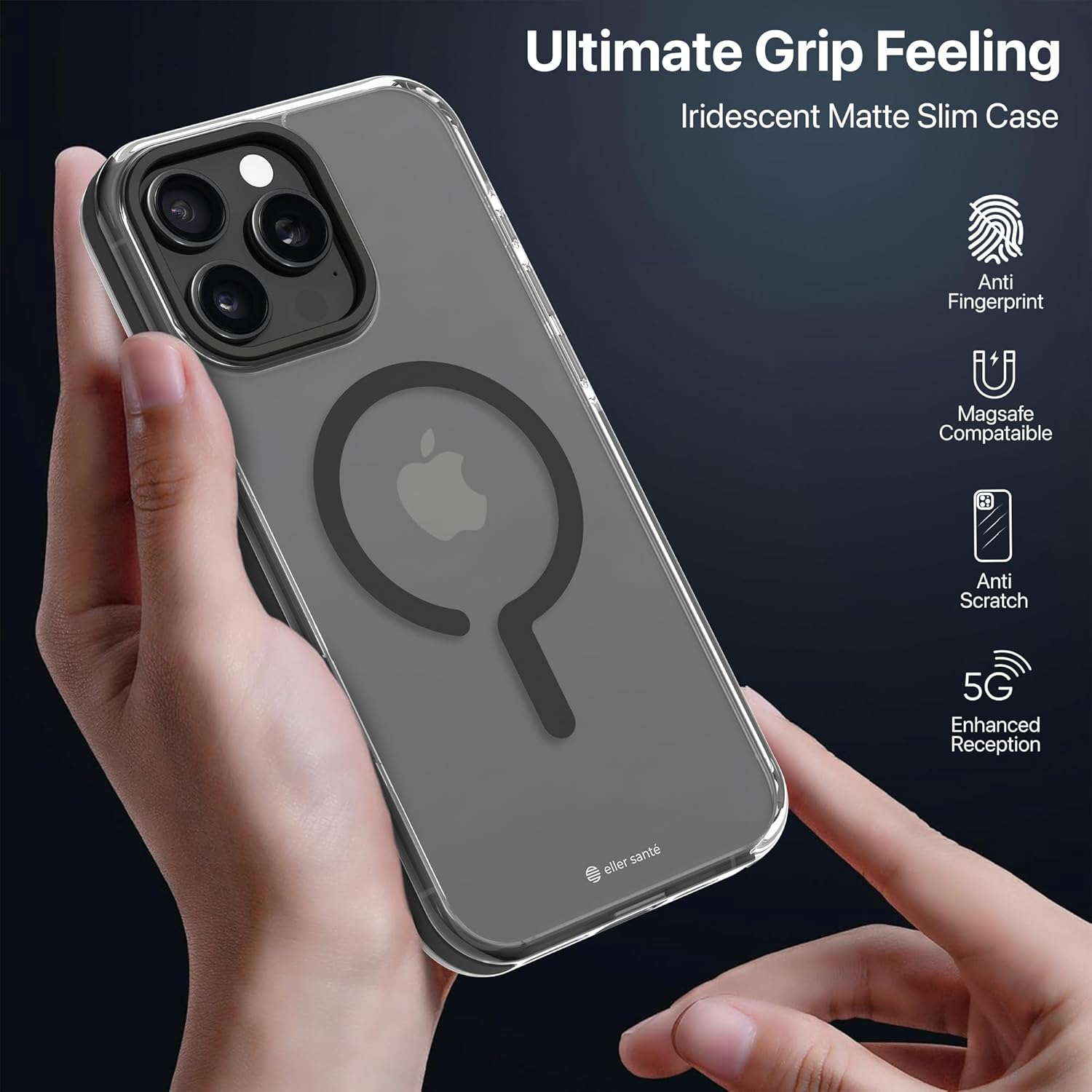 eller santé® Apex Magpro Back Cover Case for iPhone 16 Pro Scratch Resistant Camera Screen Protector TPU Shockproof 10ft Drop Protection Support Mag-Safe Wireless Charging- Black