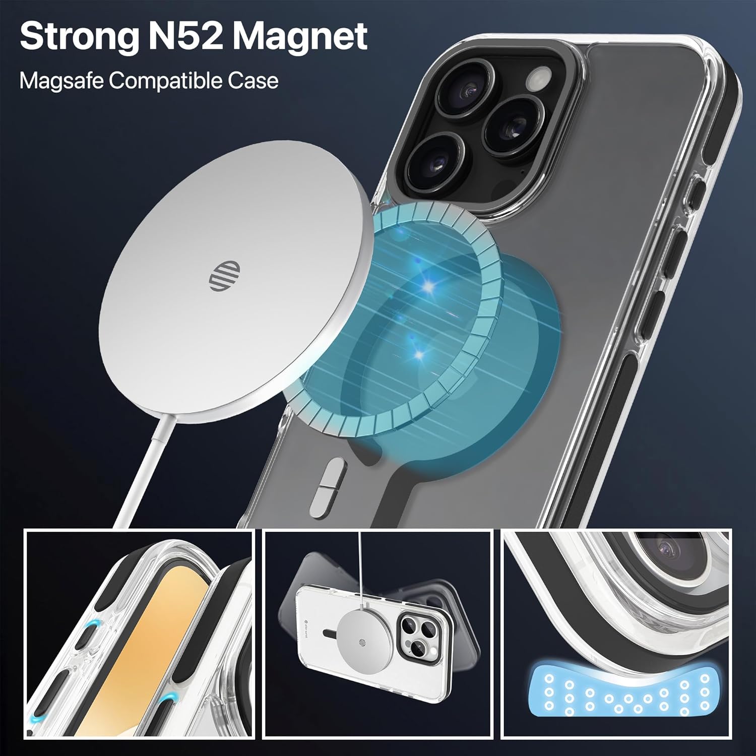 eller santé Back Cover For iPhone 16 Pro Scratch Resistant Shockproof Protective TPU Phone Case 10ft Feet Drop Protection Support Mag-Safe Wireless Charging