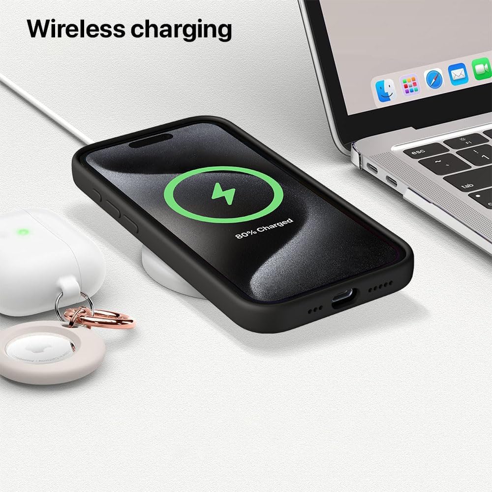 eller santé® Silicone Back Cover Case for iPhone 15 Pro Shockproof Scratch Resistant Slim Fit Protective Design Military-Grade Protection Support Mag-Safe Wireless Magnetic Charging- Black