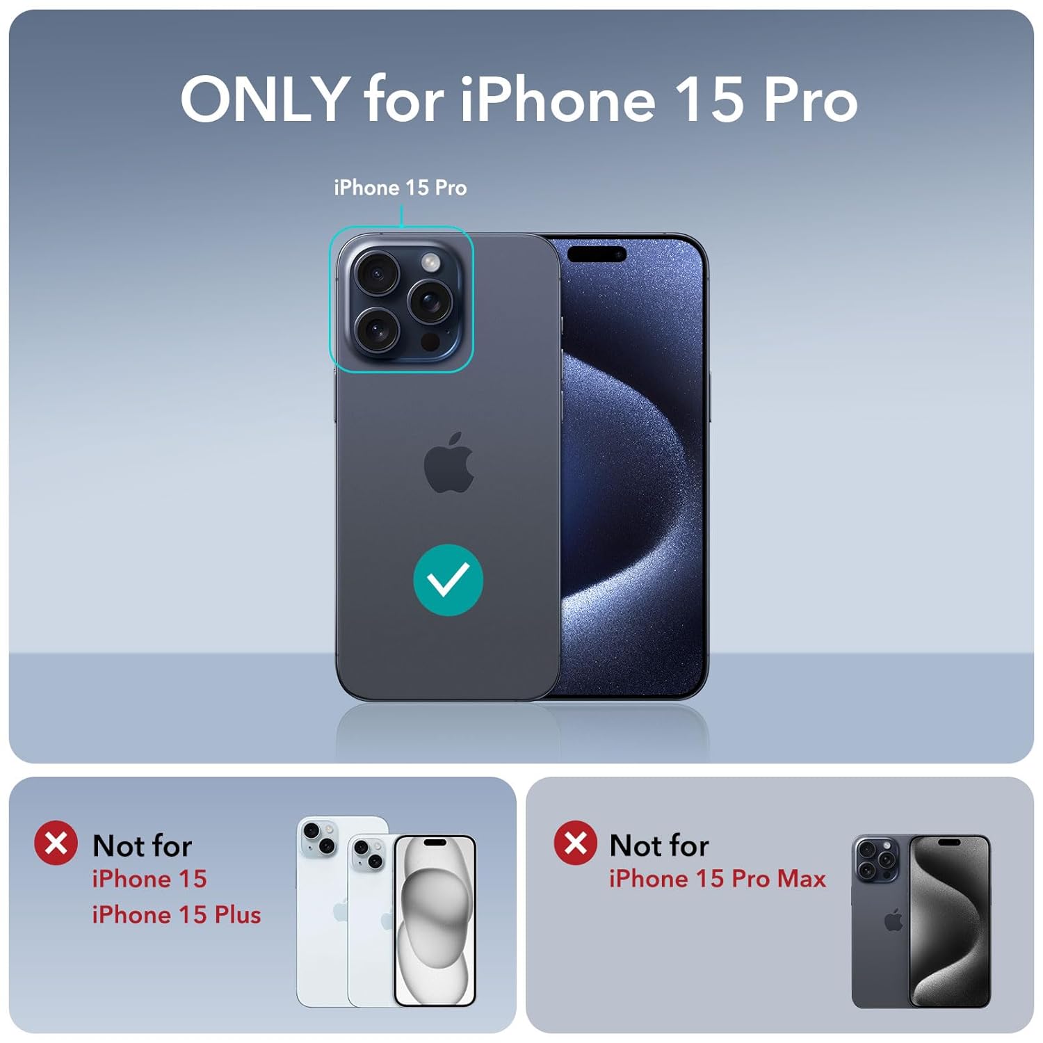 Compatibility: only for iPhone 15 Pro; doesn’t include camera lens protectors or built-in camera lens protector