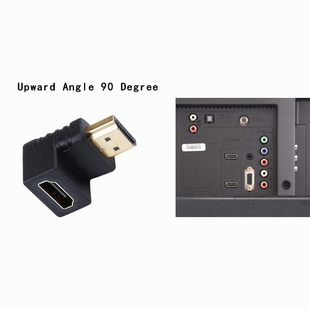 · Compatible with all HDMI cables works for any devices that have HDMI port, also the best choice for connecting TV stick to TV.· 90° Connector can be used to connect HDMI cables to HDMI devices when the space between the HDMI device and the wall is narrow.· Right Angle design can avoid damage to the HDMI ports on your devices or avoid damage to the cable.· Converts standard socket into an upward or backward-angled socket. This adapter will prevent you from having to bend your existing HDMI cable