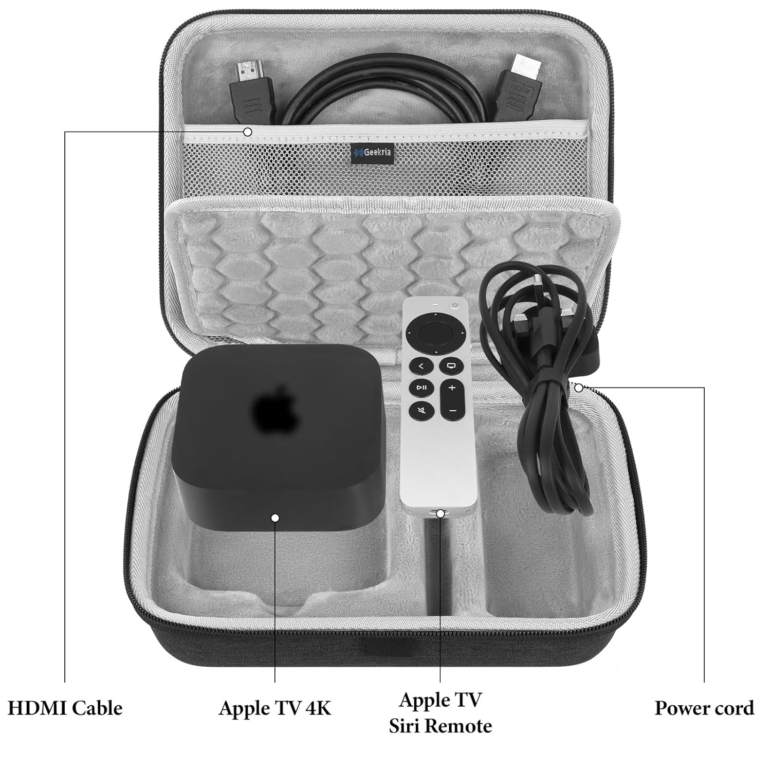 Geekria Hard Shell Travel Carrying Case, Compatible with Apple TV 4K 2024 3rd Generation, Apple TV 4K 2022 3rd Generation, Apple TV 4K 2021 2nd Generation, Apple TV Siri Remote (Dark Grey)