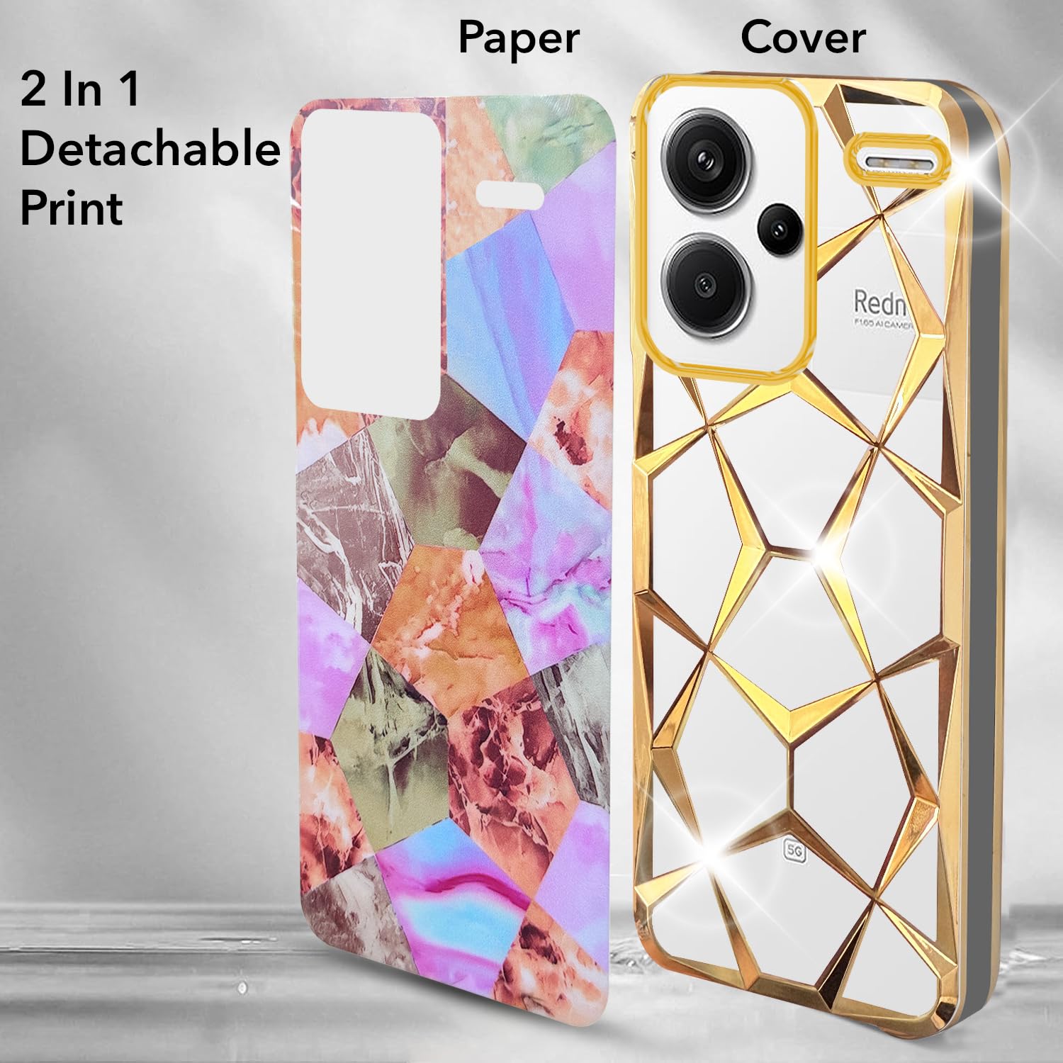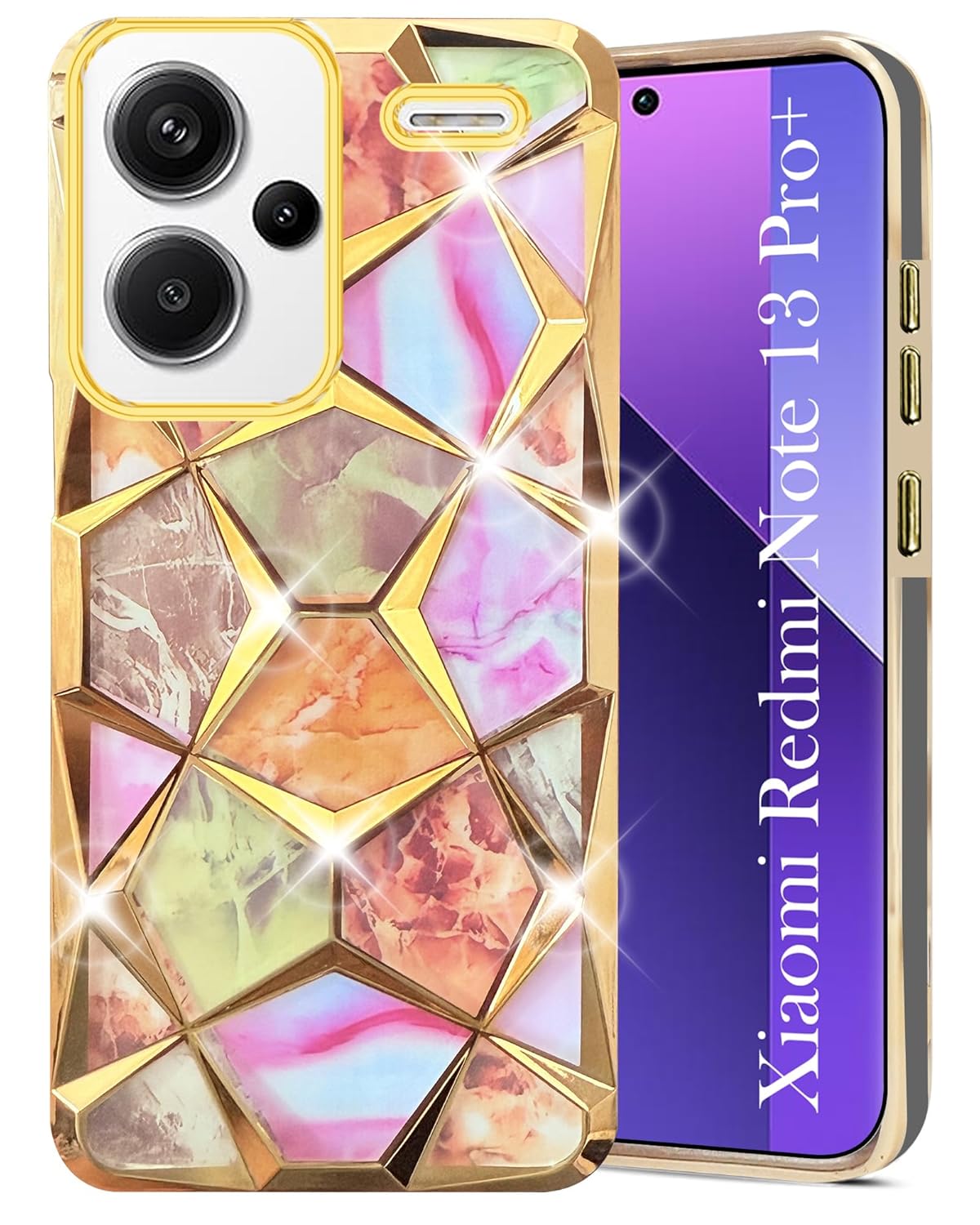 Jkobi Back Cover Case Compatible with Redmi Note 13 Pro Plus (Dual Design Glitter Sparkle and Detachable Diamond Print Case | Soft and Flexible)