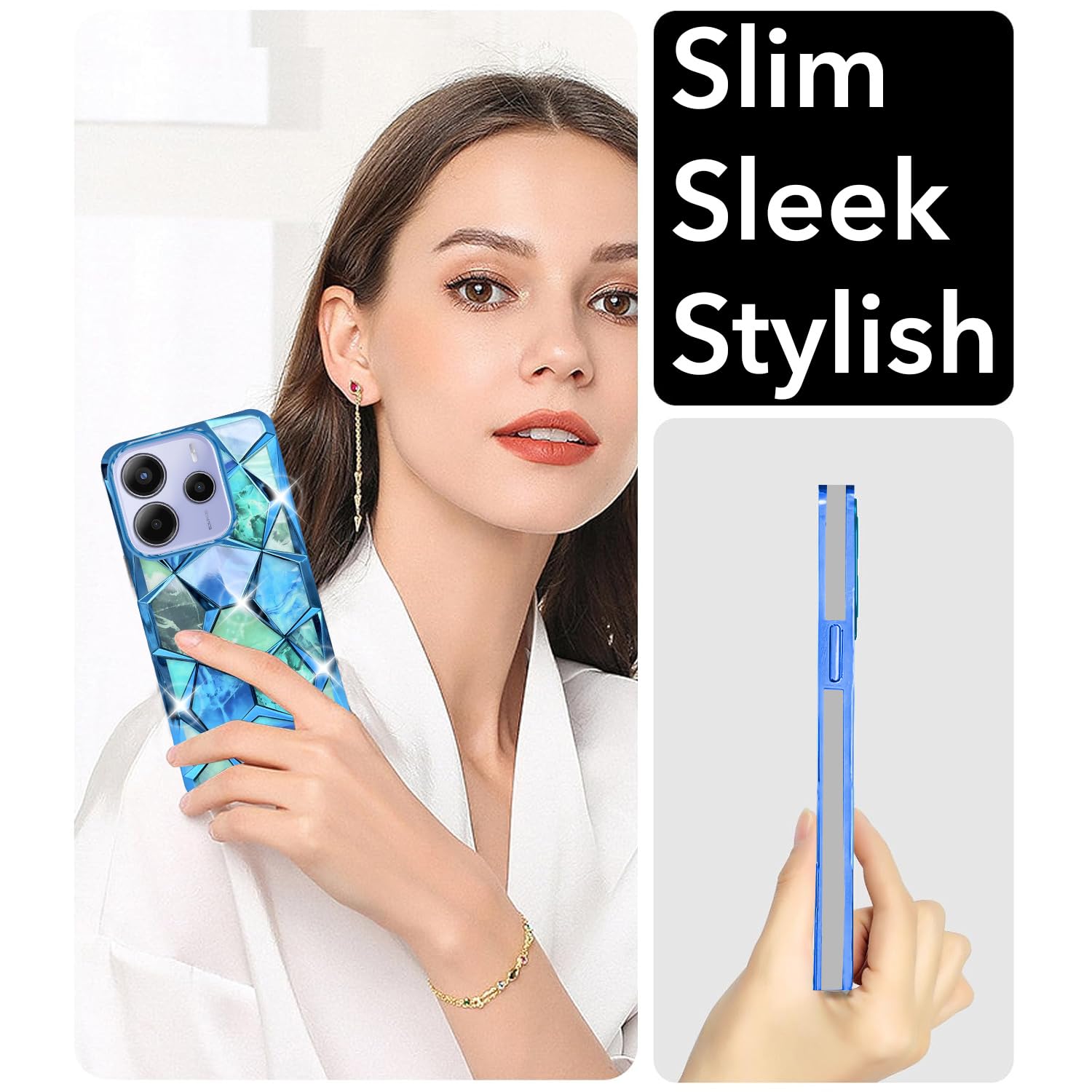 Jkobi Back Cover Case Compatible with Redmi Note 14 5G for Girls (Dual Design Glitter Sparkle and Detachable Diamond Print Case | Soft and Flexible)