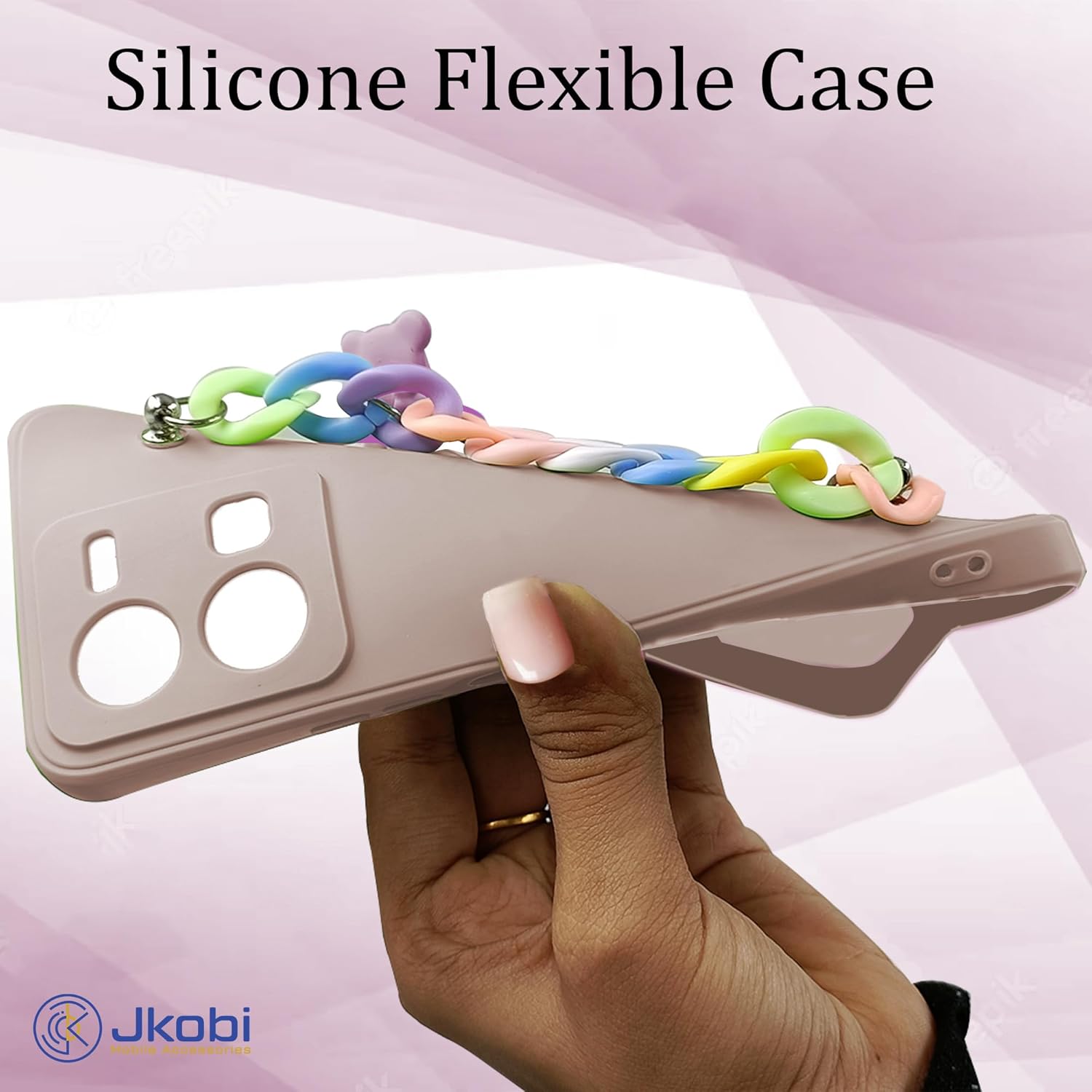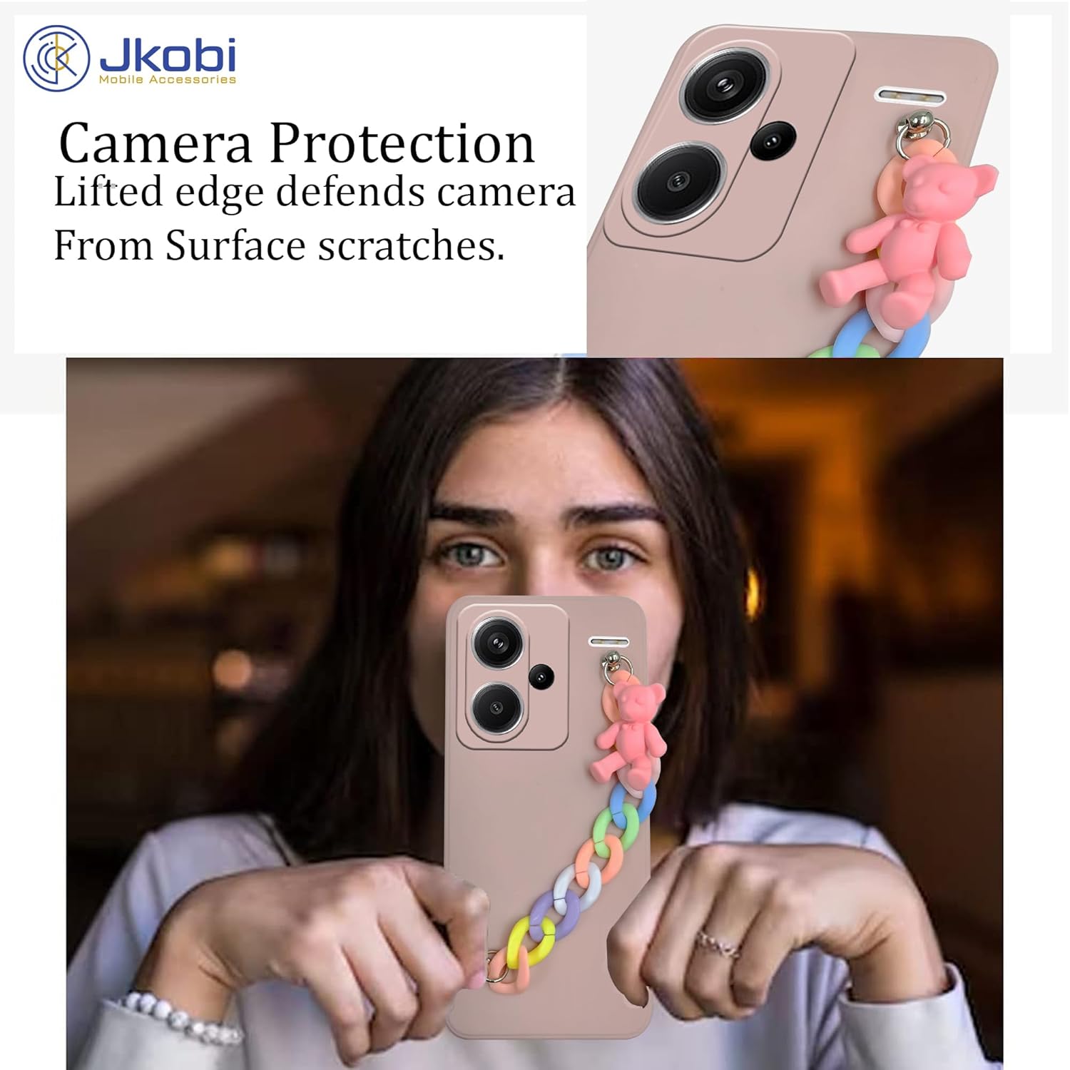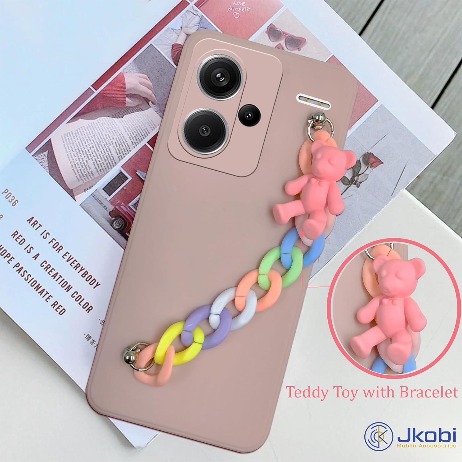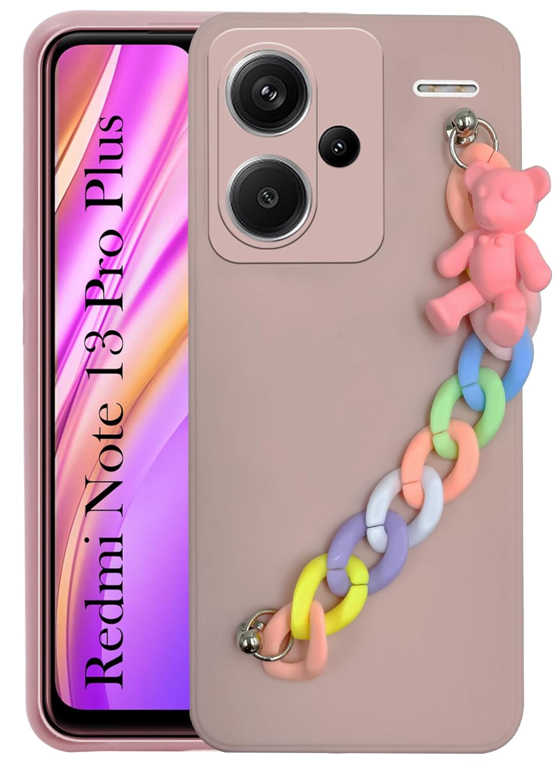 Jkobi Back Cover for Redmi Note 13 Pro Plus Girls Case with Bracelet (Wrist Hanging Chain | Teddy Toy Cartoon | Matte Pink)