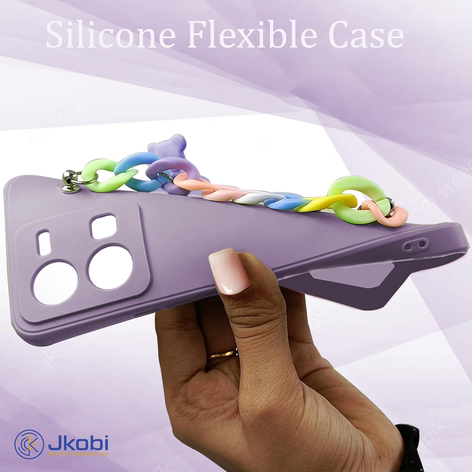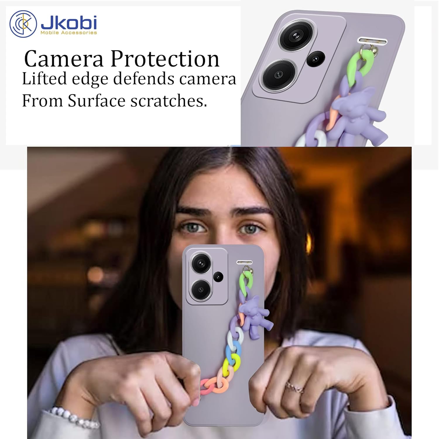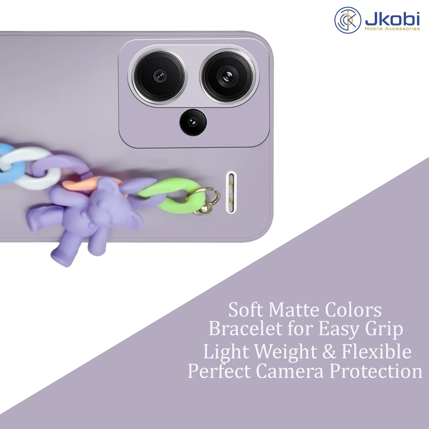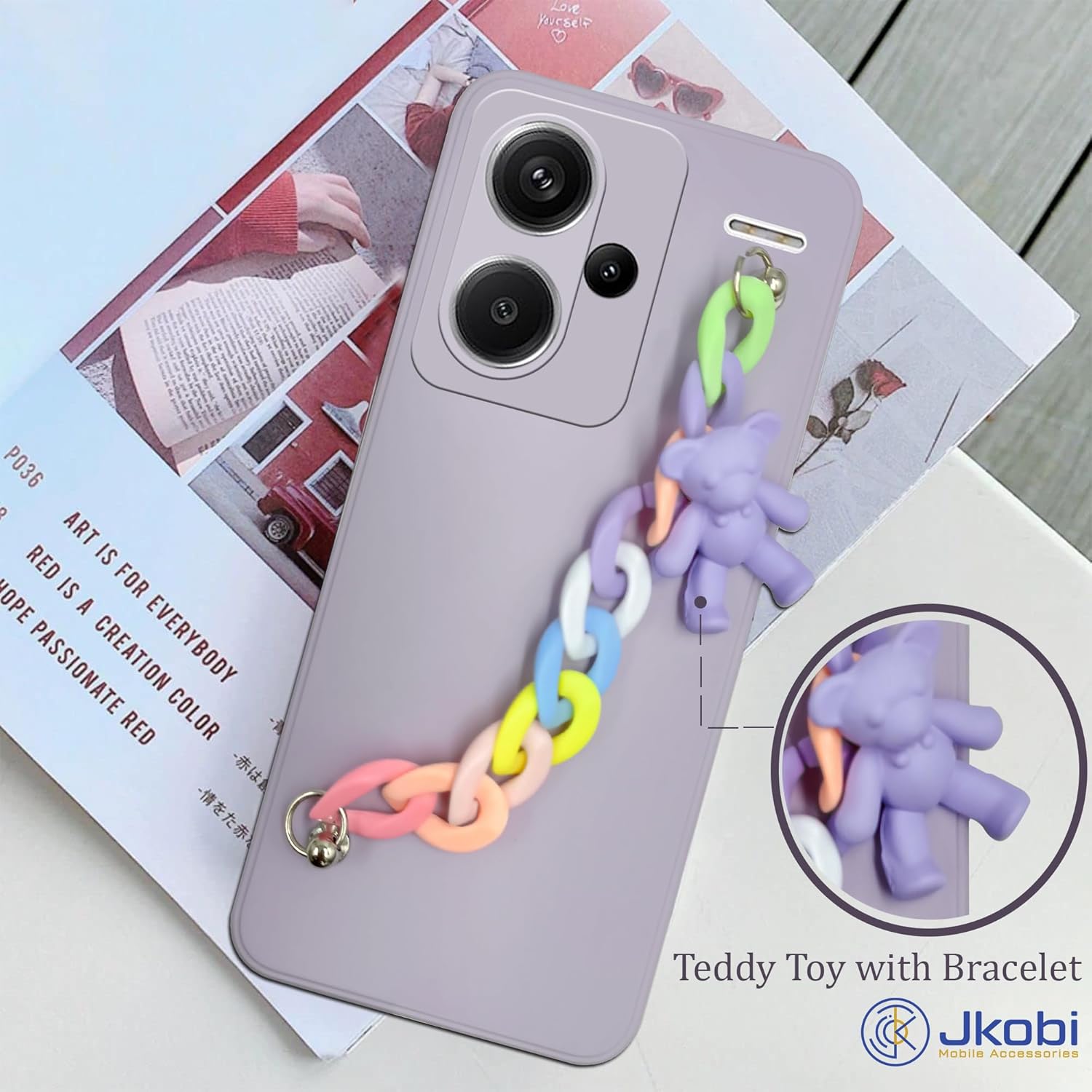 Jkobi Back Cover for Redmi Note 13 Pro Plus Girls Case with Bracelet (Wrist Hanging Chain | Teddy Toy Cartoon | Matte Purple)