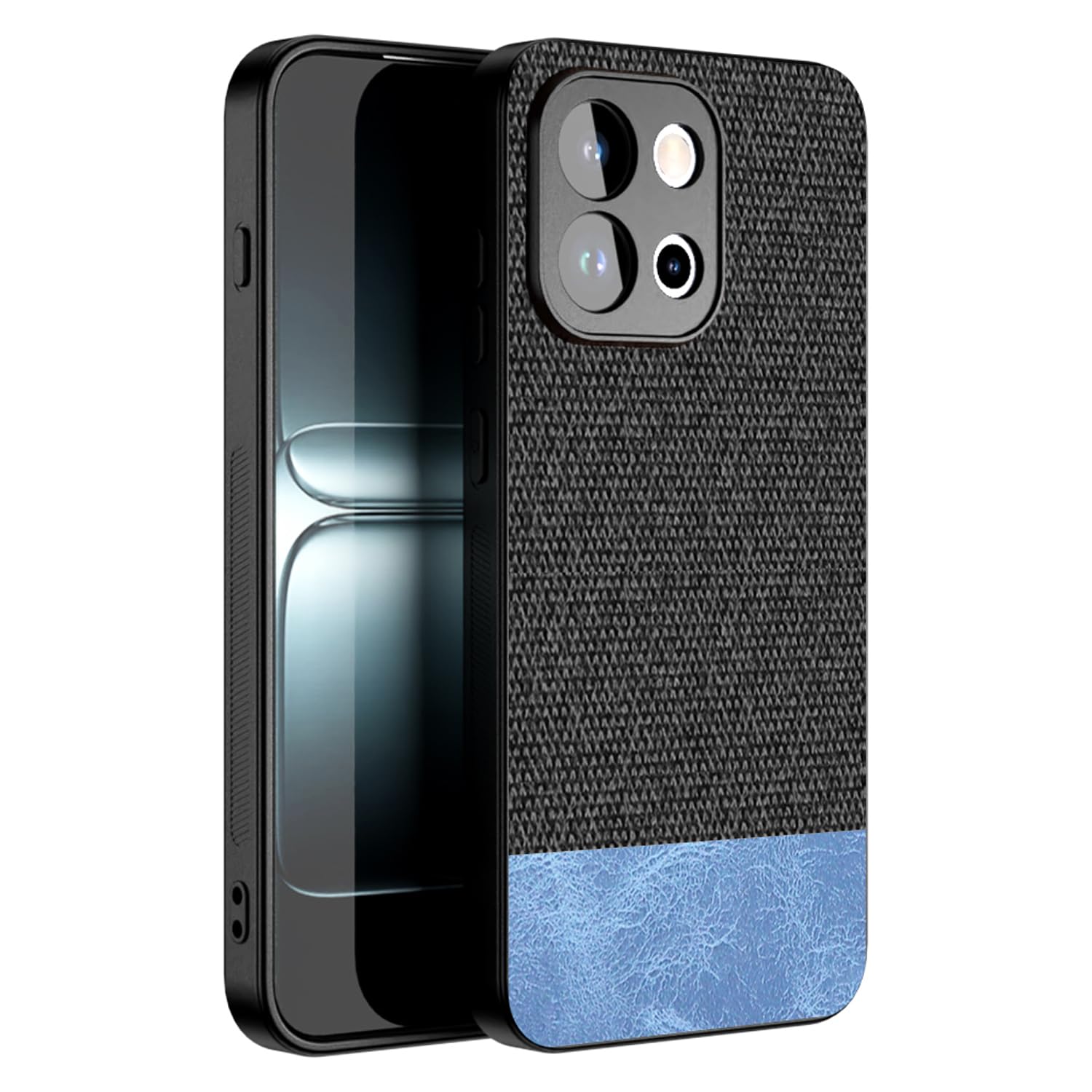 Kapa Soft Fabric & Leather Hybrid Protective Back Cover for OnePlus 13S | Shockproof Slim Hard Anti Slip Back Case (Black,Blue)