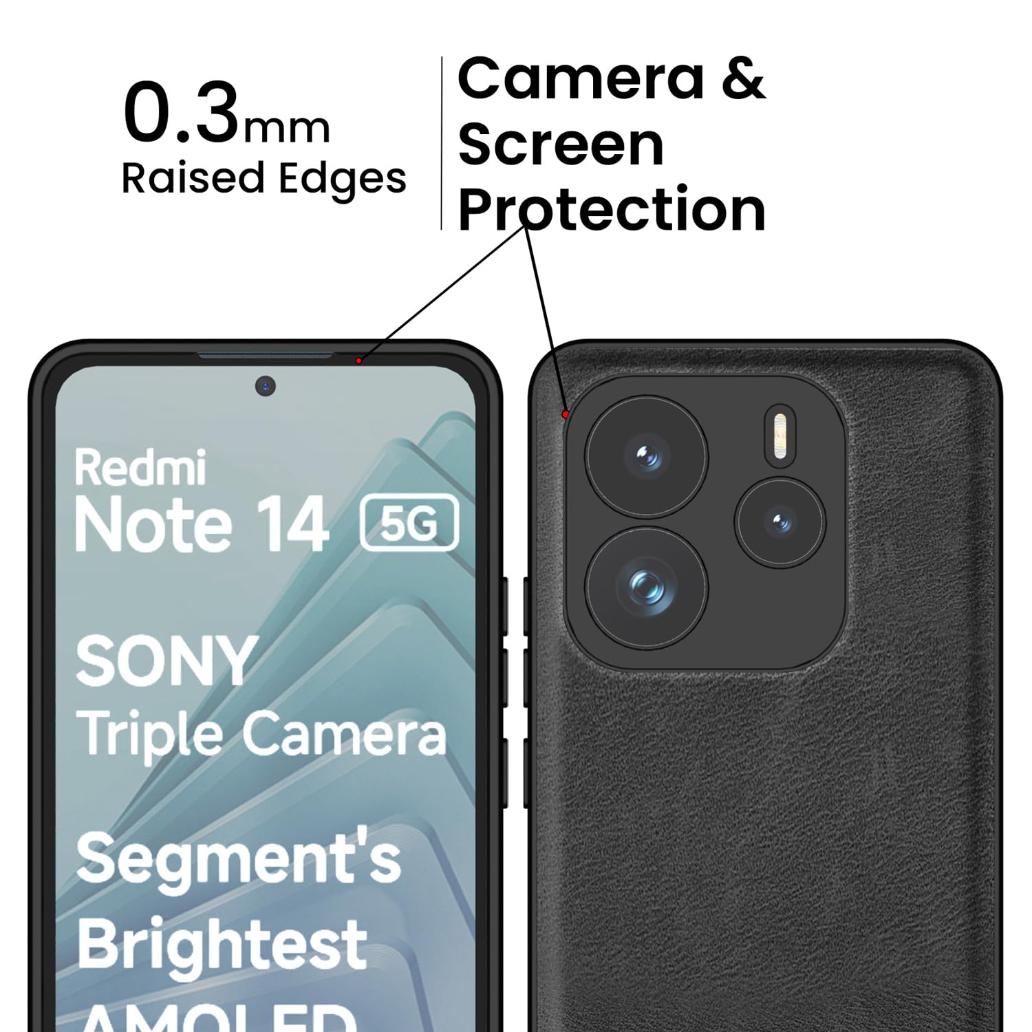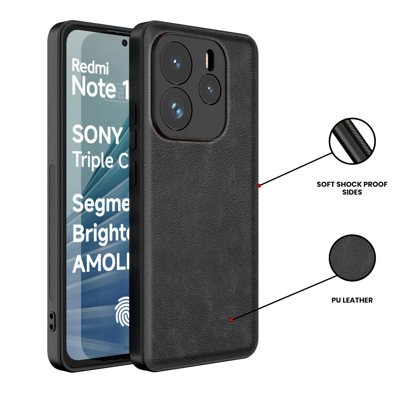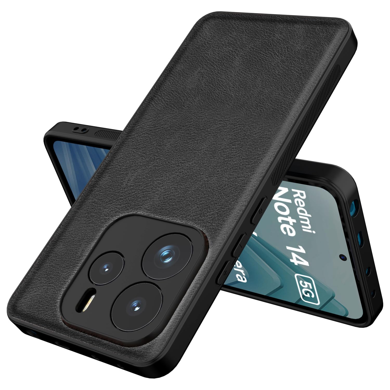 Kapa Tux Leather Back Cover for Redmi Note 14 (5G) | Slim Shockproof Camera Protection Bumper Case (Black)