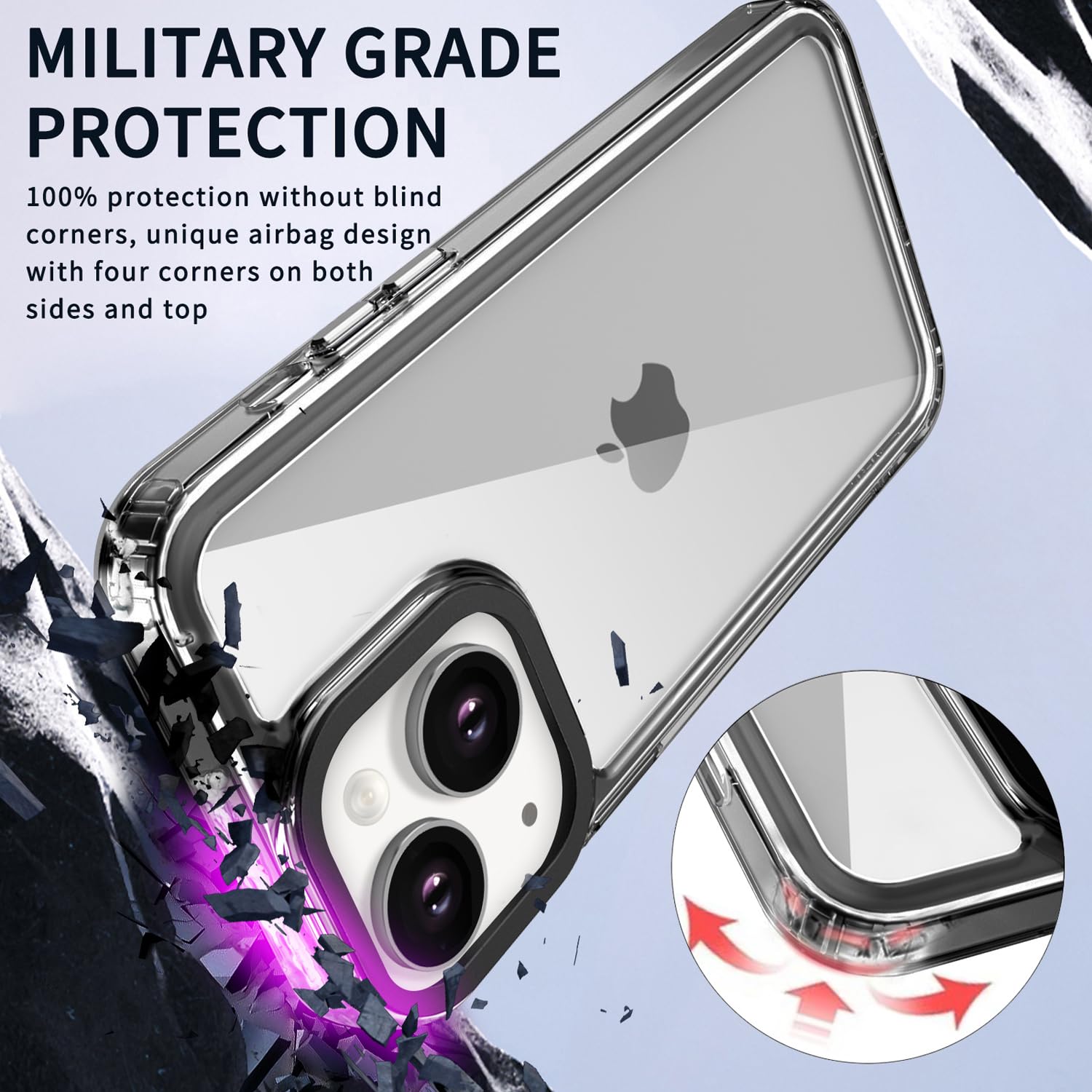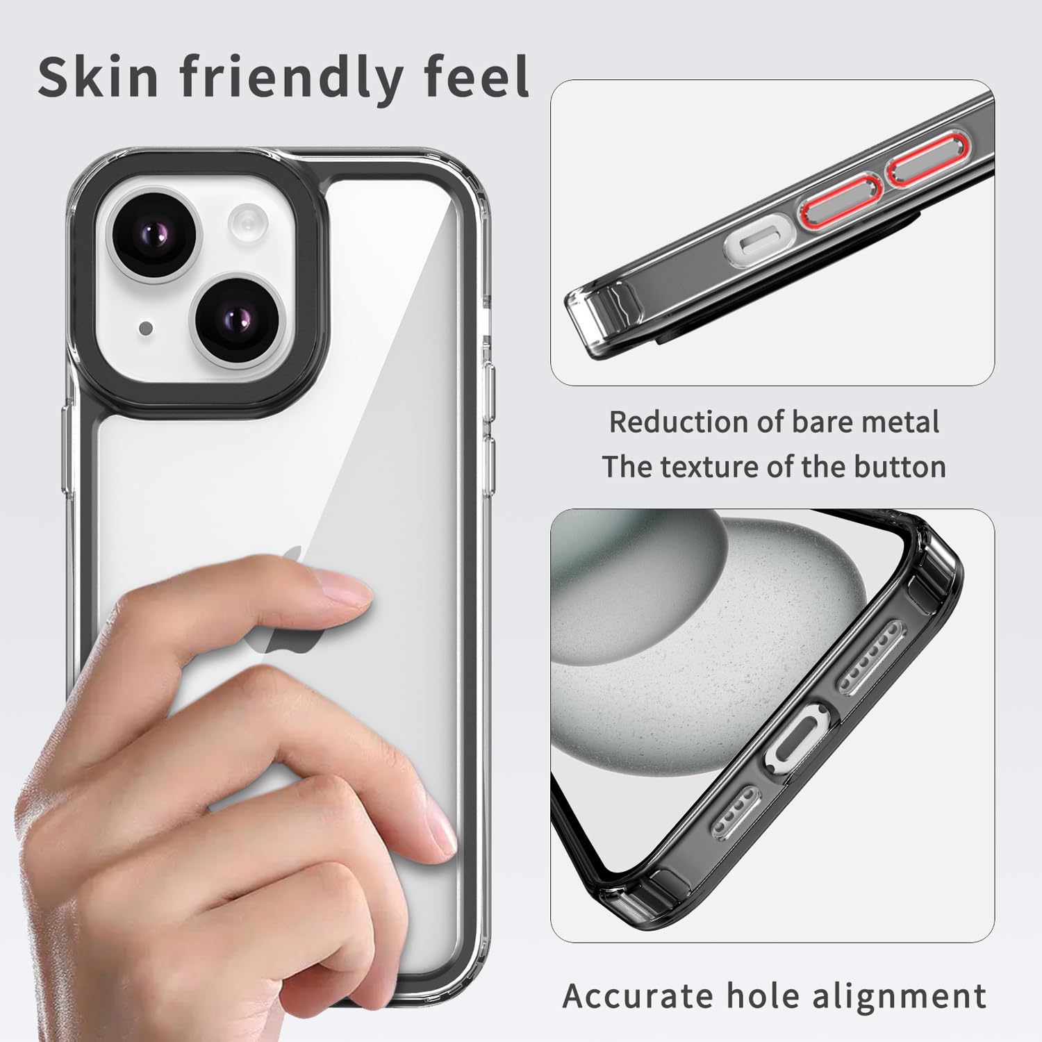 Kapa Warrior Acrylic Clear Back Cover for Apple iPhone 15 | Slim Shockproof [Military Grade Protection] Hybrid Bumper Case (Black Sides)