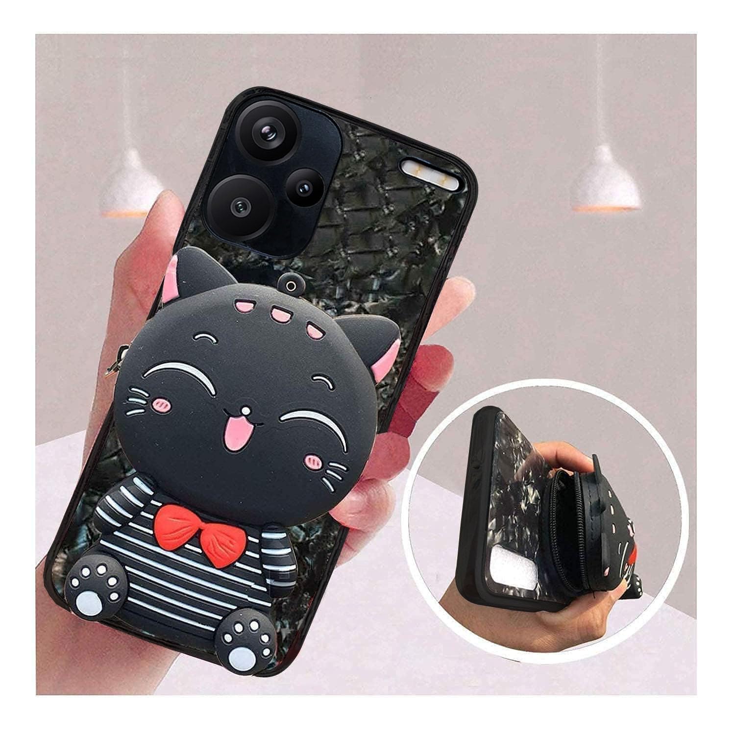 Compatible with Mi Redmi Note 13 Pro Plus 5G. KC Cartoon Lucky Cat White Stripe Kitten Case Soft Shock Proof with Zipper Lock Purse Wallet, Soft Bumper Silicone Shock Proof Back Cover. It comes with a Cute Cartoon Lucky Cat Pink Stripe Kitten Purse that lets you carry your earphones, air pods, Money, Keys, Lipstick, etc. that’s not the end you can use the back cover as a stand as well, The case is a pretty, beautiful adorable cartoon style, which is the perfect selection for your kids, girls or women. The Back cover is Shockproof so it saves your phone from accidental fall down and for design surely you’ll get lots of compliments for the case everywhere, especially your kids will love it and enjoy the honey period with the case. The Special Design of this case looks amazing and suits all the available colors of Mi Redmi Note 13 Pro Plus 5G, The case is a soft silicone material that is convenient for you to install and won’t leave scratches when you put on and take off from your phone. Brand New, Cool special color and Piggy Suite Bear design cartoon make your phone in fashion, Cute and Lovely. The Mobile Pouch Looks Pretty Stylish Designer and Fits for Everyone Kids, Teens Girls, and women. It’s a Cute and Adorable Cartoon Animals Design Back Cover. Special Design can let your case stand when watching videos, viewing news, having phone calls, or taking timed group photos. You can carry your ID card, driver’s license, credit card, Metro card, and even some cash without an extra bulky wallet when you hanging out.
