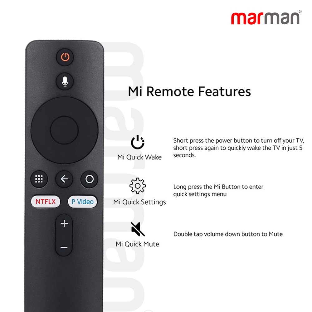 marman® Compatible with Bluetooth Remote Control for Mi Android Box, Mi Stick, 4K HDR, with Google Assistant, Voice Command, Netflix & Prime Video Streaming App Hotkeys – Pairing Must !