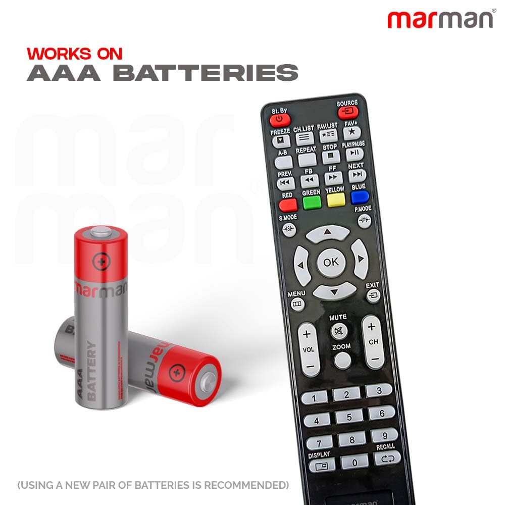 marman® Compatible with Universal Remote Control for Reliance Reconnect, Impex & Mitashi TV Suitable for LCD LED Television Non Voice Command – Make Sure Existing Controller Replicate As Similar Model