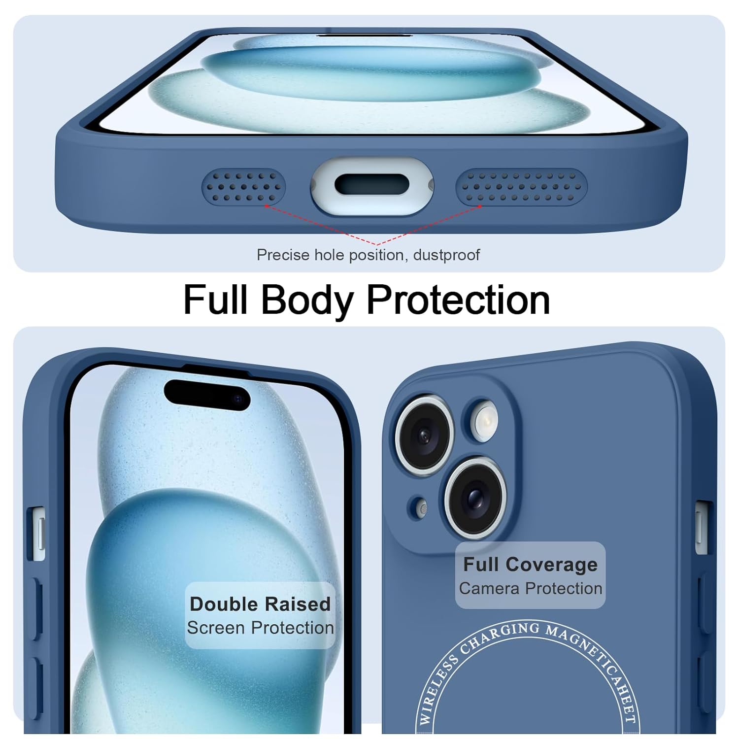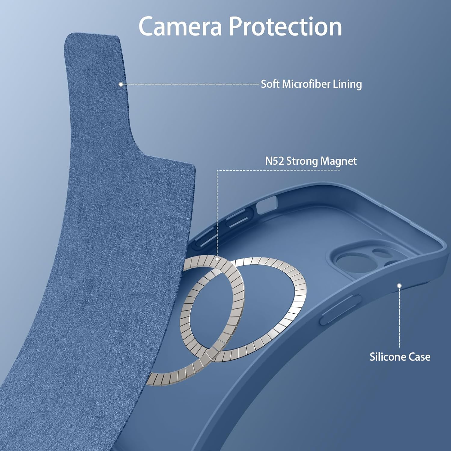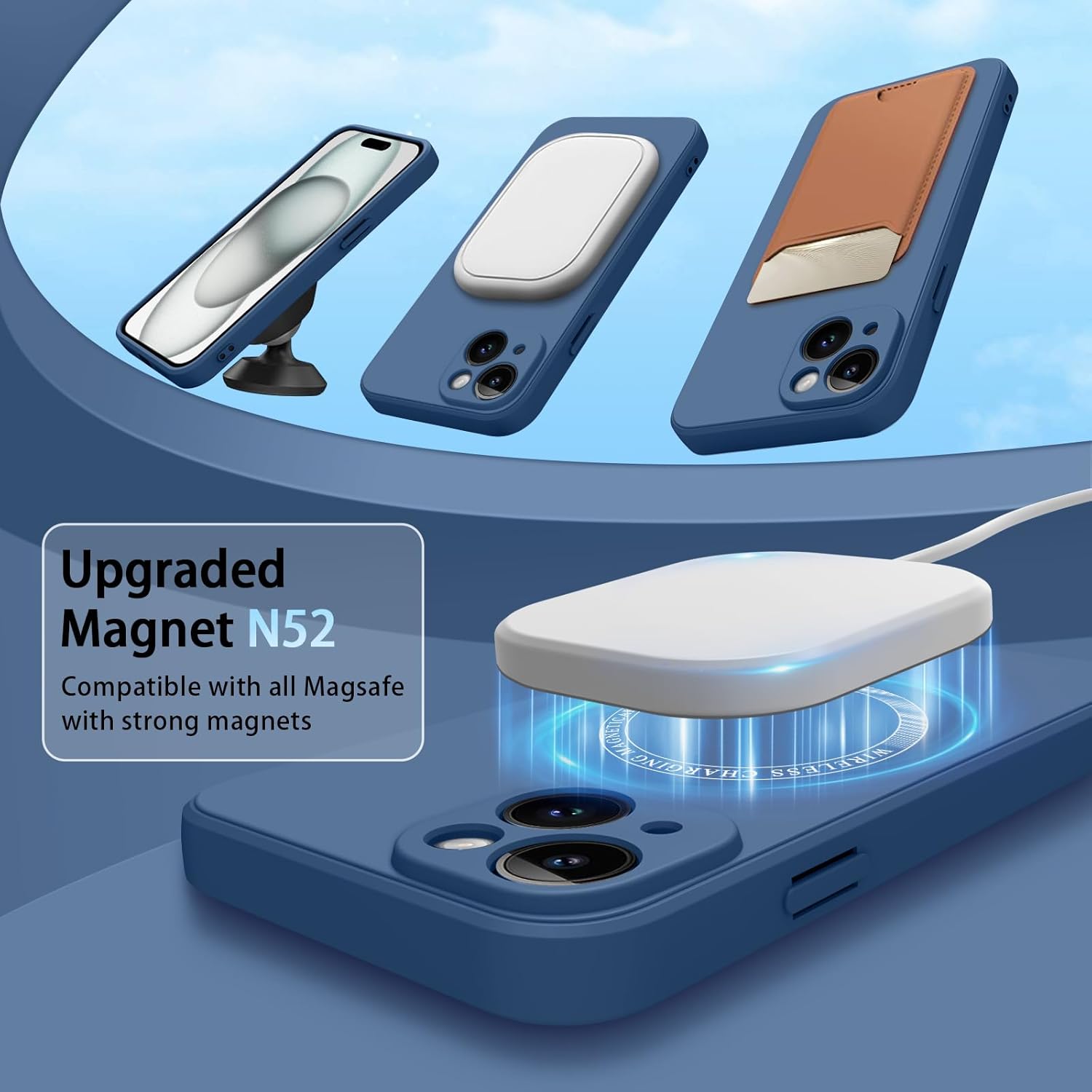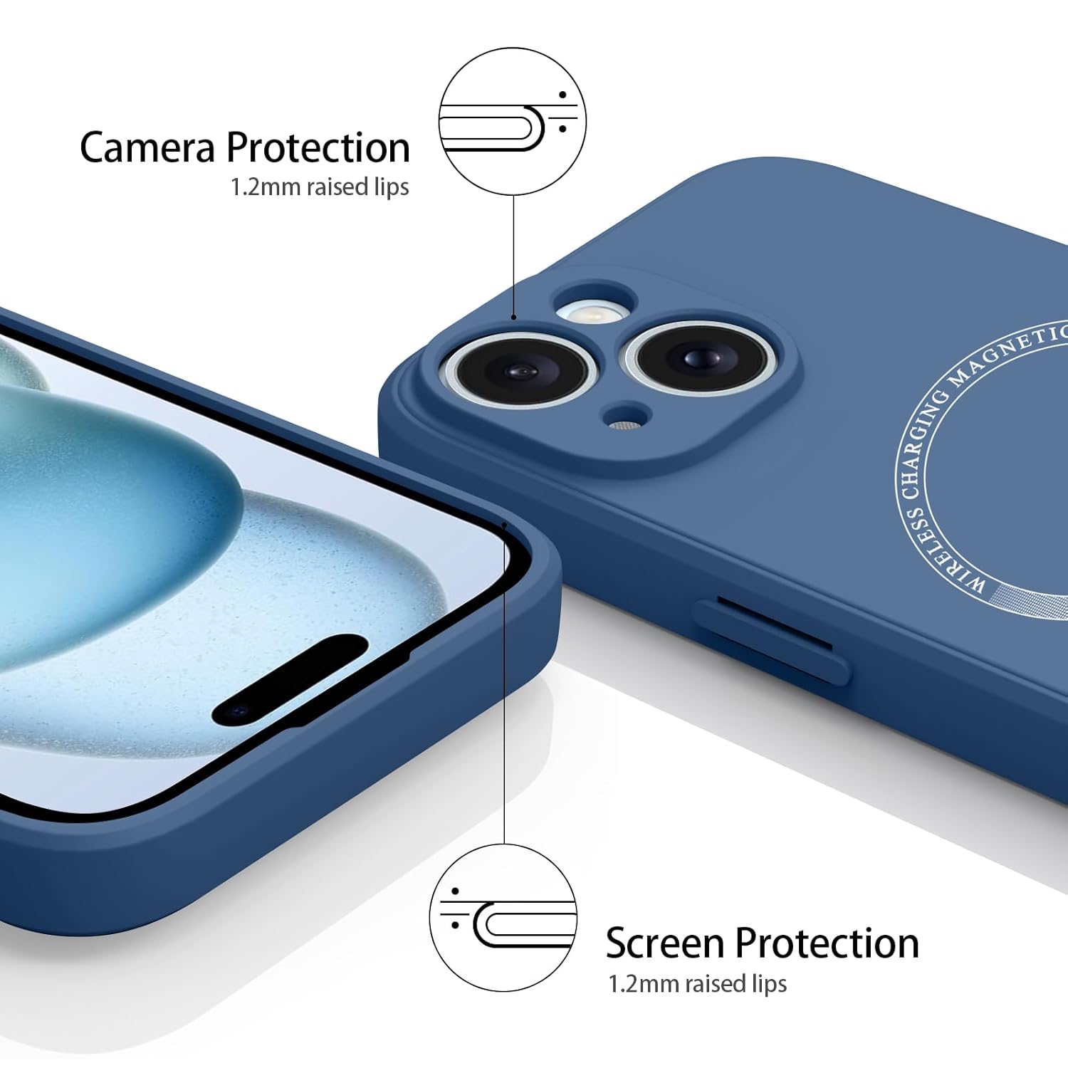 Meliya Magnetic Case for iPhone 15 Phone Case with MagSafe, Camera Protection Ultra Slim Shockproof Bumper Liquid Silicone Case with Microfiber Lining,Navy blue