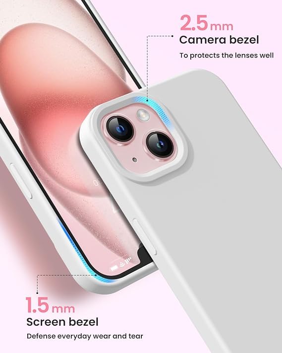MIDOS Back Cover Compatible with iPhone 15 Case Liquid Silicone Full Protection Shock Proof Back Cover for iPhone 15 (White)