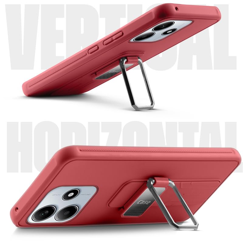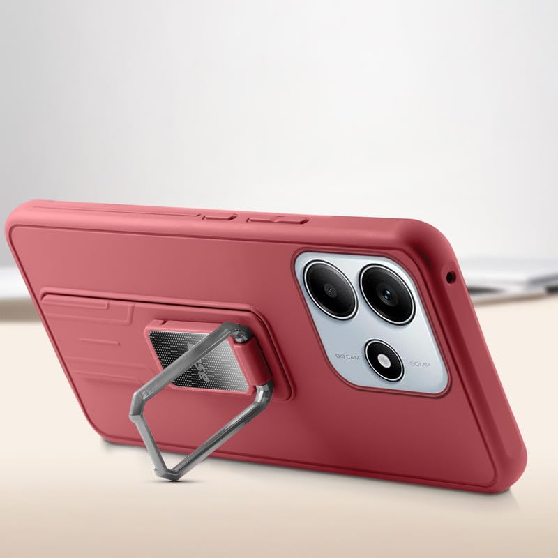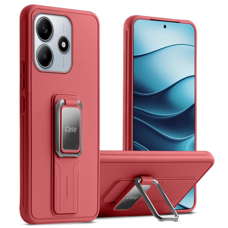 Mr. Case Shockproof Kickstand Case for Redmi Note 14 5G | Slim Fit Rugged Armor with Ring Holder & Camera Protection – Red