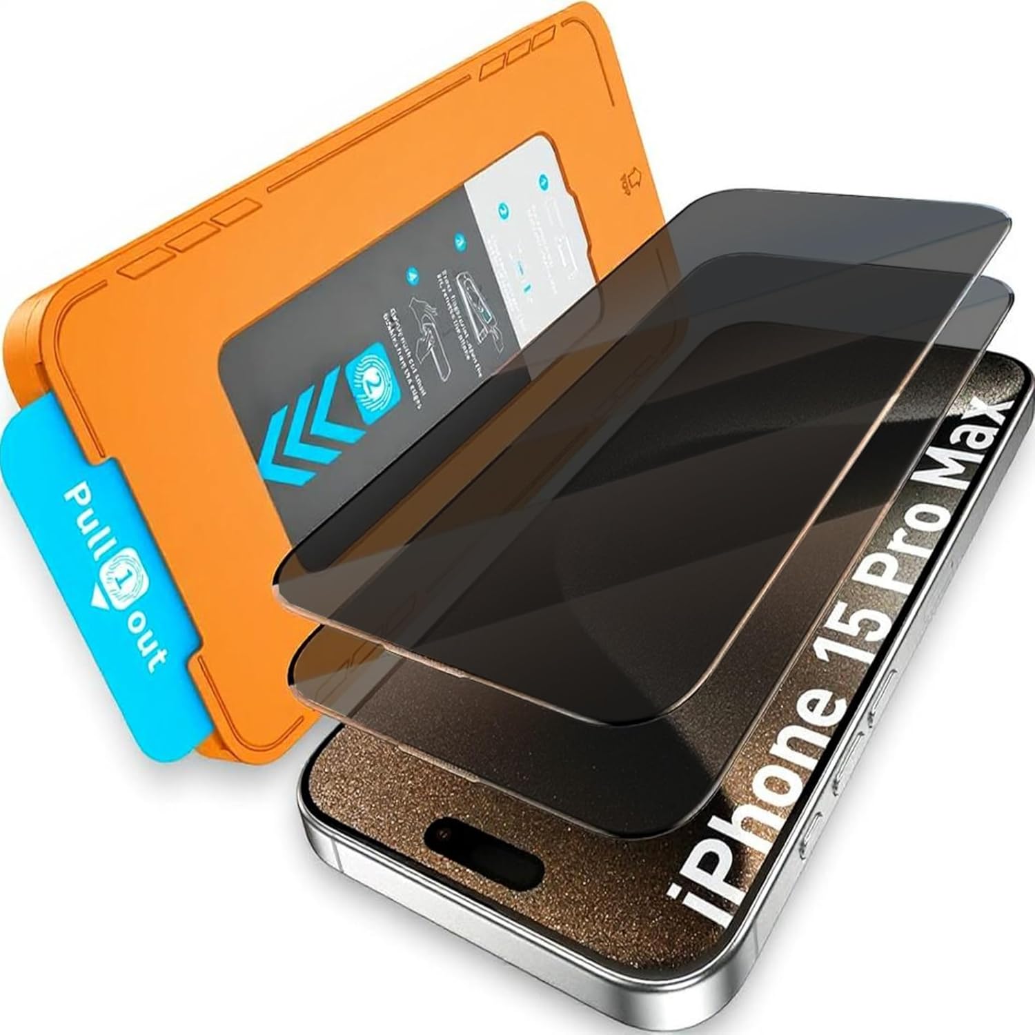 In the Box: Mr.Shield PRO-GLAZ Privacy tempered glass screen protectors guard (1 pack, only for iPhone 15 Pro Max), PRO-GLAZ Privacy tray, cleaning kit, and manual