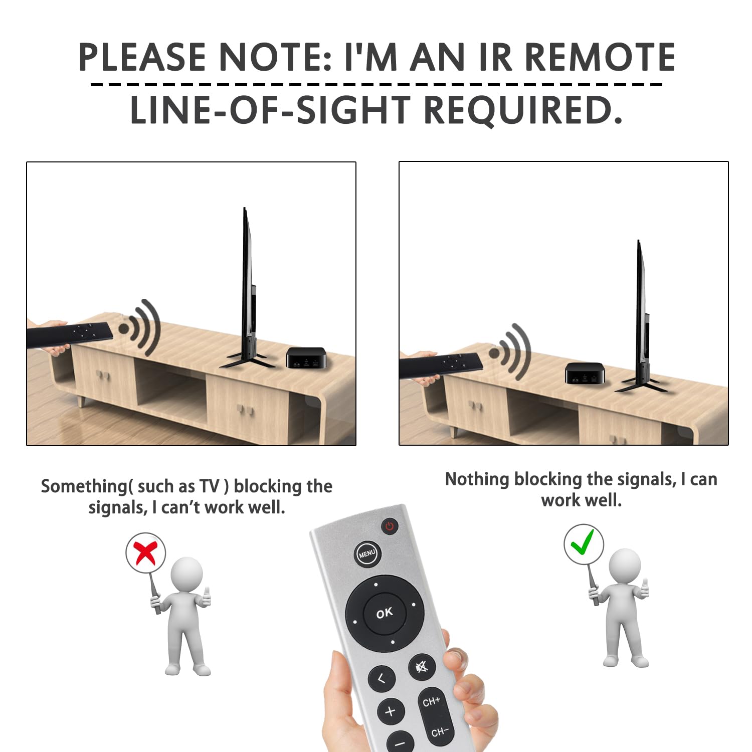 【No Voice Function】This is an IR remote, line-of-sight required. NOT Siri remote, NO Voice control, NO Touchpad function. Not for A-Pod/H-Pod. [For those devices you need to use the original remote.]