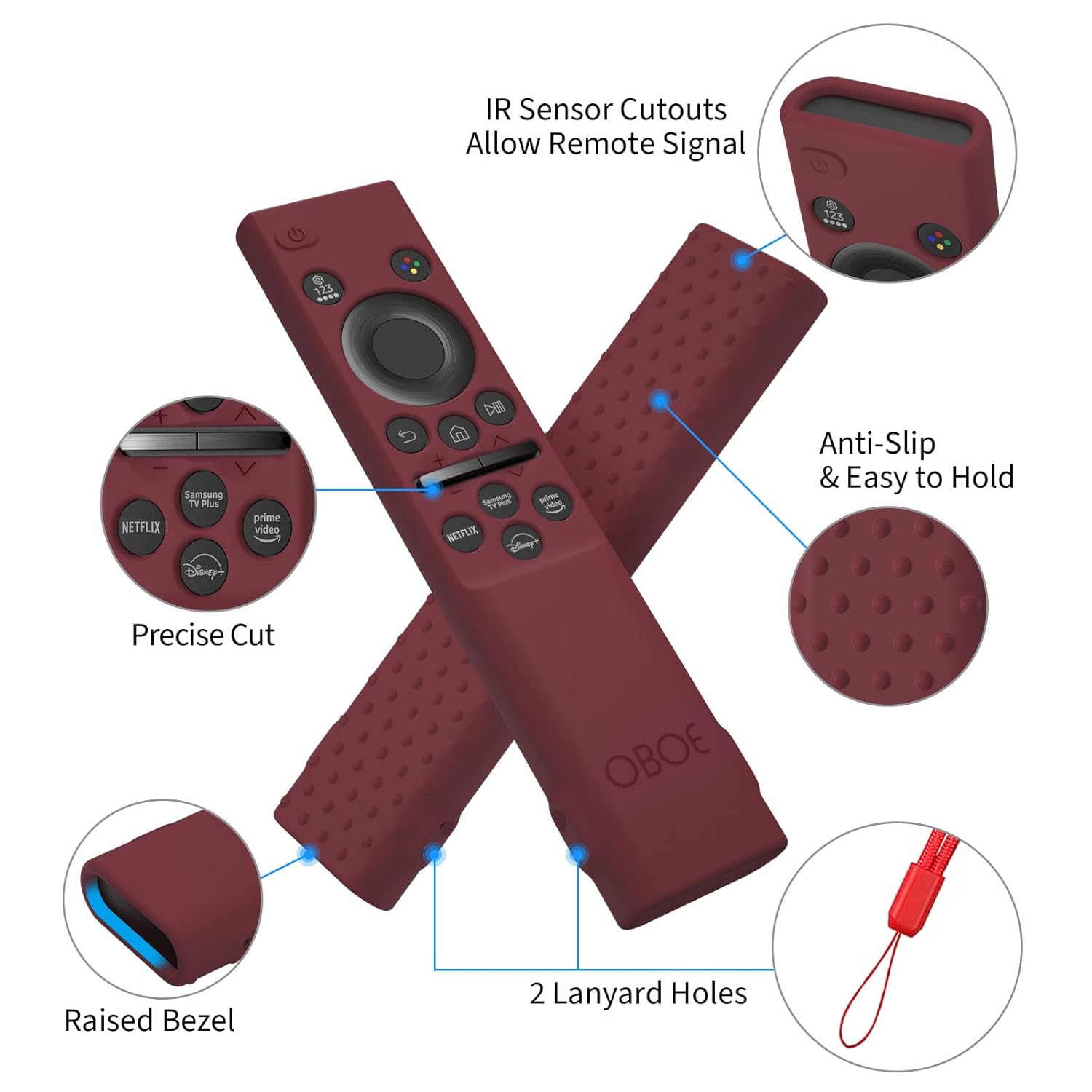 Oboe Silicone Tv Remote Cover Compatible with Samsung Smart Tv Remote BN59-01311 Samsung QLED TV Remote Open Key Protective Case with Loop (I-Wine Red) [Remote NOT Included]
