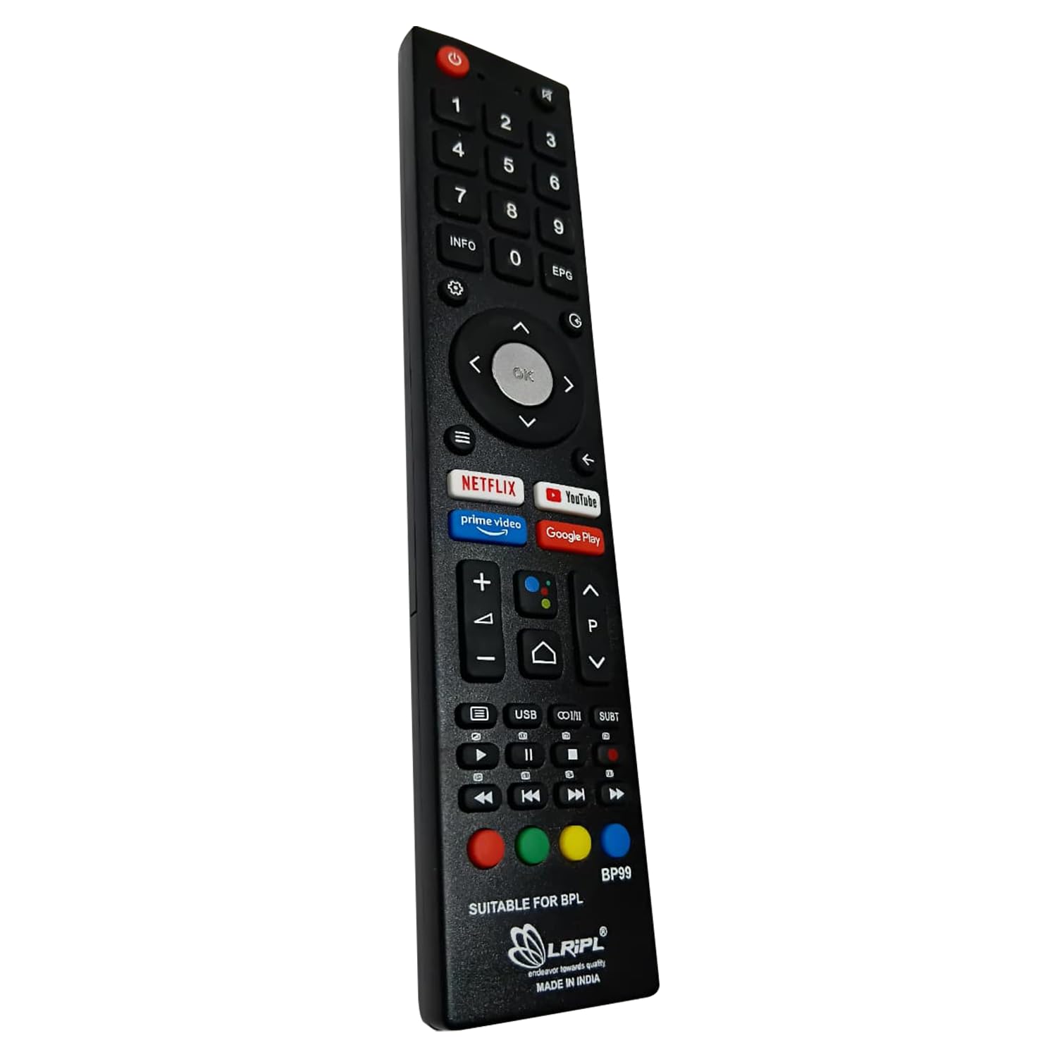 Original Replacement Remote Control for BPL Smart LED TV, Android 4K UHD Television with Netflix, Prime Video, YouTube, Google Play Keys Remote No. 1167 – with Voice Function (BPL Non Voice)