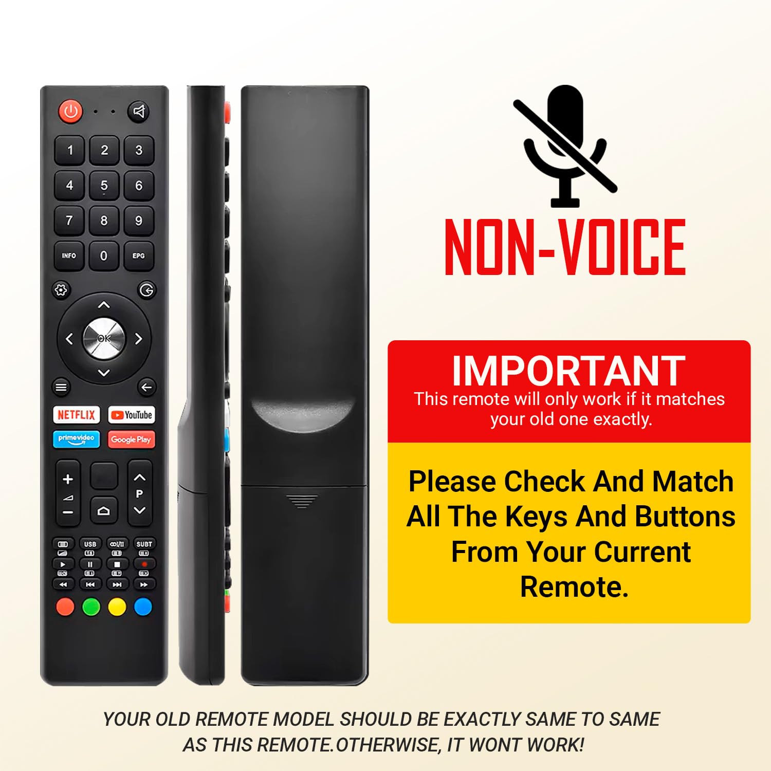 DEDICATED KEYS: Quick access buttons for Netflix, Prime Video, YouTube, and Google Play for instant streaming.