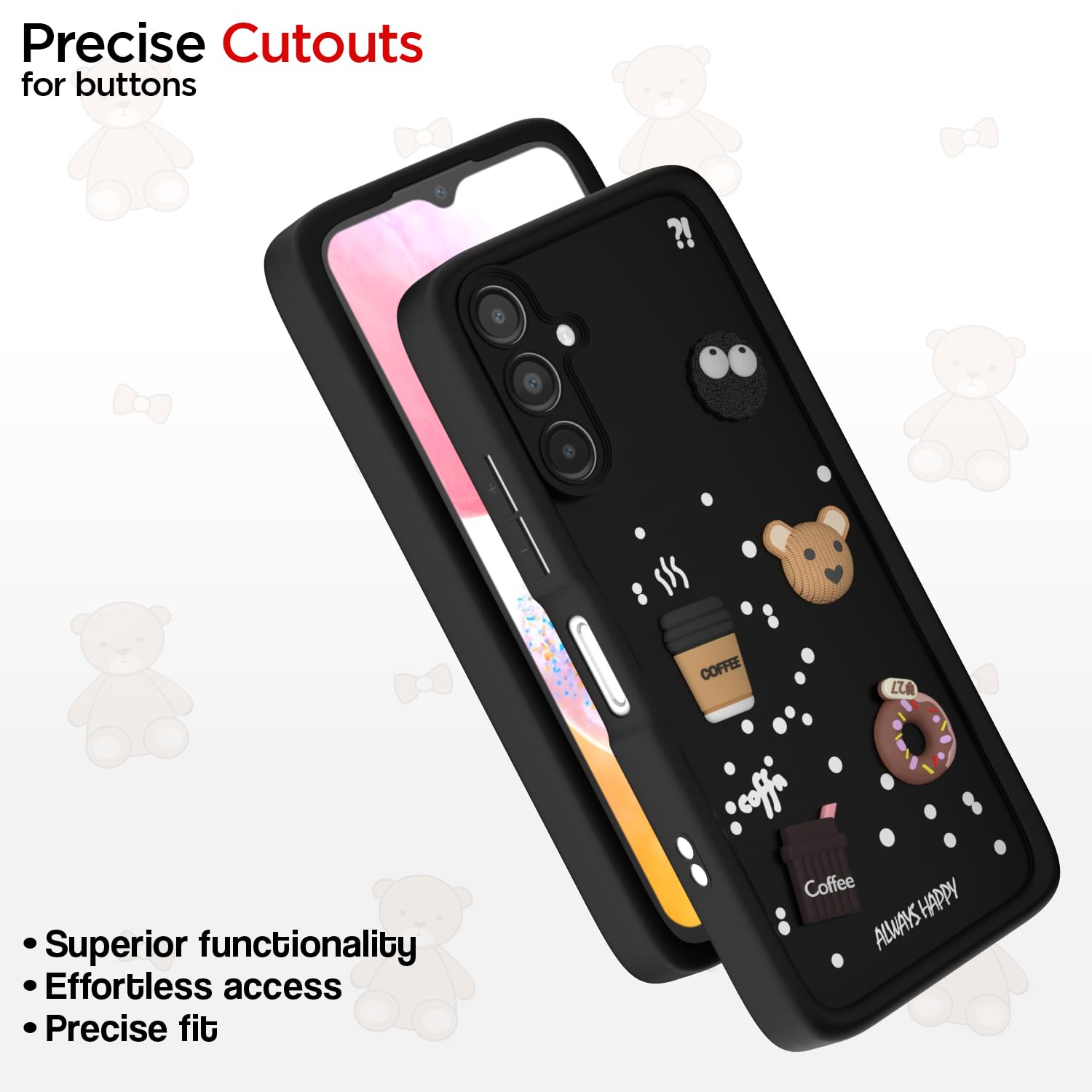 Pikkme Back Cover for Samsung Galaxy A14 4G / A14 5G | Cute Fun Cartoon 3D Bear Silicone Full Body Protection Bumper Cover (Black)
