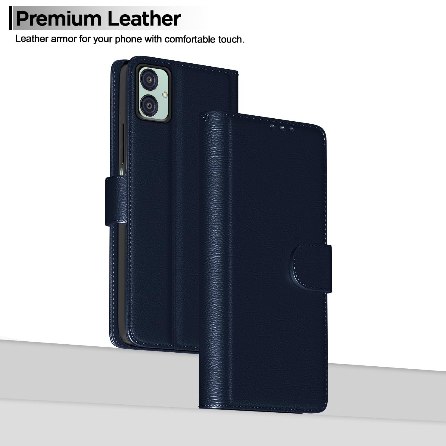 Kick back and relax with a kick-stand engineered into the design of Pikkme leather case. Become a walking mobile theater for quick media sessions on the go Enjoy entertainment while you eat and off your Samsung Galaxy M04 / F04 / A04e screen