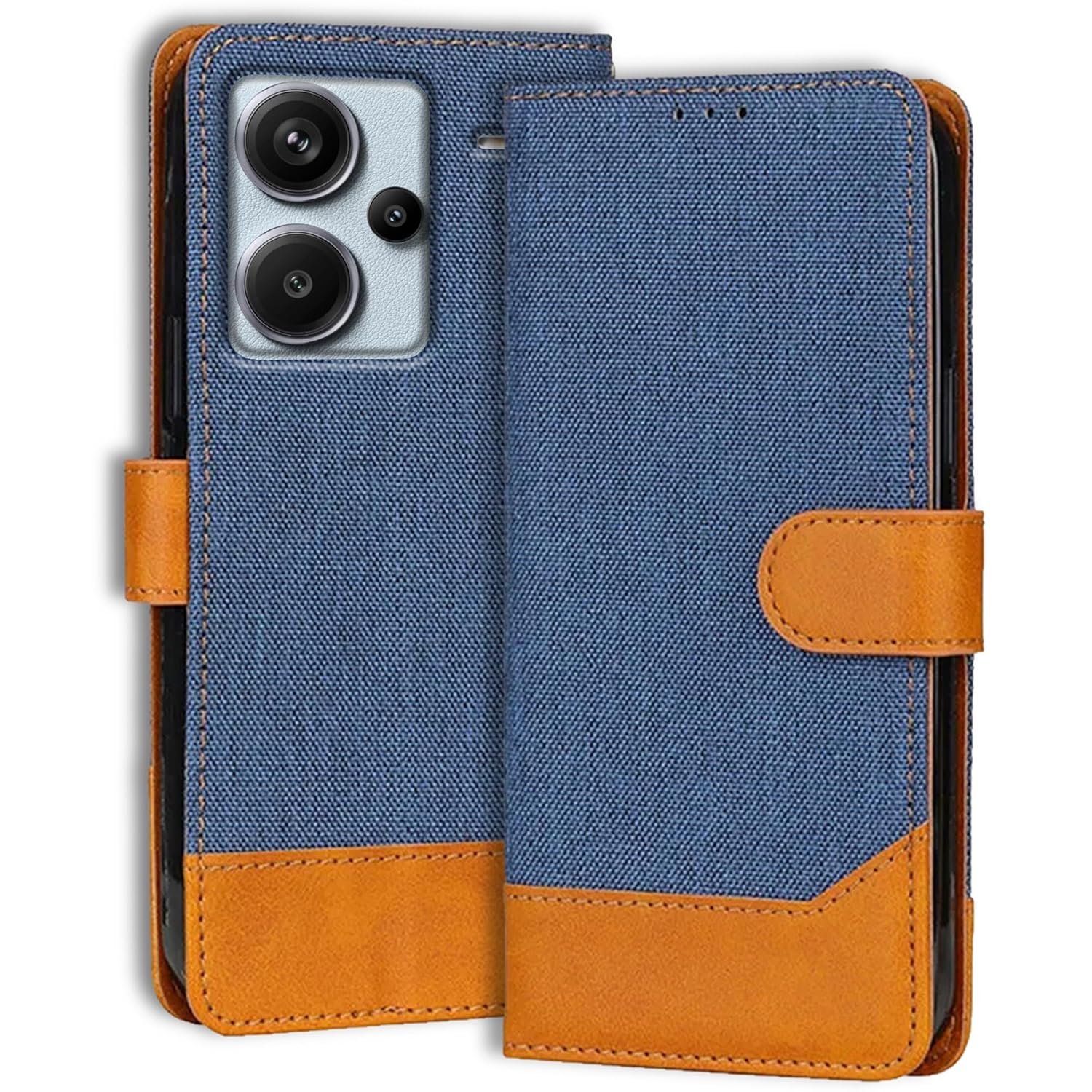 Stylish & Durable Redmi Note 13 Pro Plus 5G Flip Cover: Elevate your device with our slim profile case, featuring a luxurious blend of faux leather and denim cloth. Precise cutouts ensure easy access to all ports and buttons.
