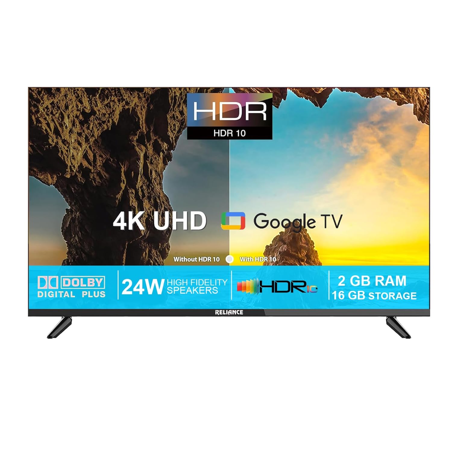 Reliance 43 inch Ultra HD 4K Smart LED Google TV | Frameless Design, 16GB Storage, Voice Remote | Netflix, JioCinema, Disney+ Hotstar | RW43GD8676UHD (Black)