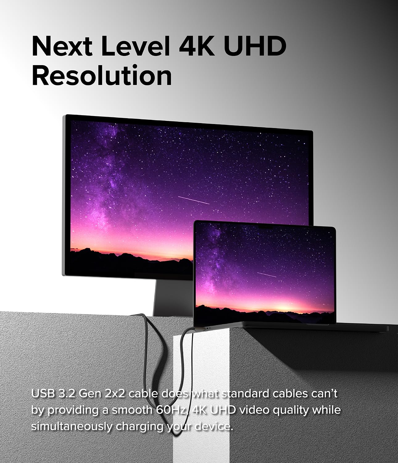Provides 60Hz, 4K UHD video resolution while simultaneously charging your device