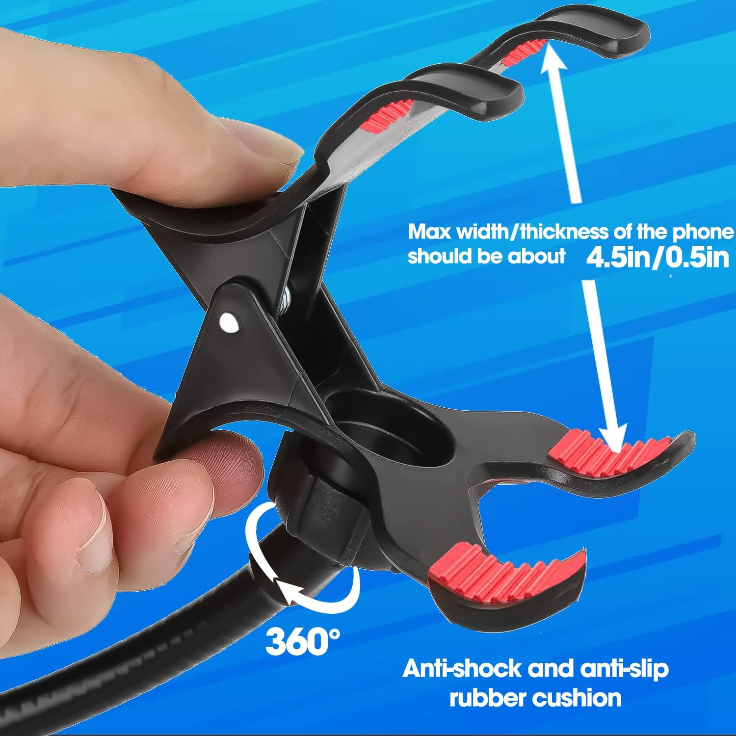 ✅【Heavy-Duty Base Clamp for Maximum Stability】: Featuring a robust metal base clamp, this mount attaches securely to surfaces up to 2.5 inches thick. Ideal for desks, tables, beds, kitchen countertops, headboards, or even car interiors, the anti-slip spring clamp ensures your device stays steady during use. Note: For heavier phones, it’s recommended to loop the gooseneck for added support and stability.