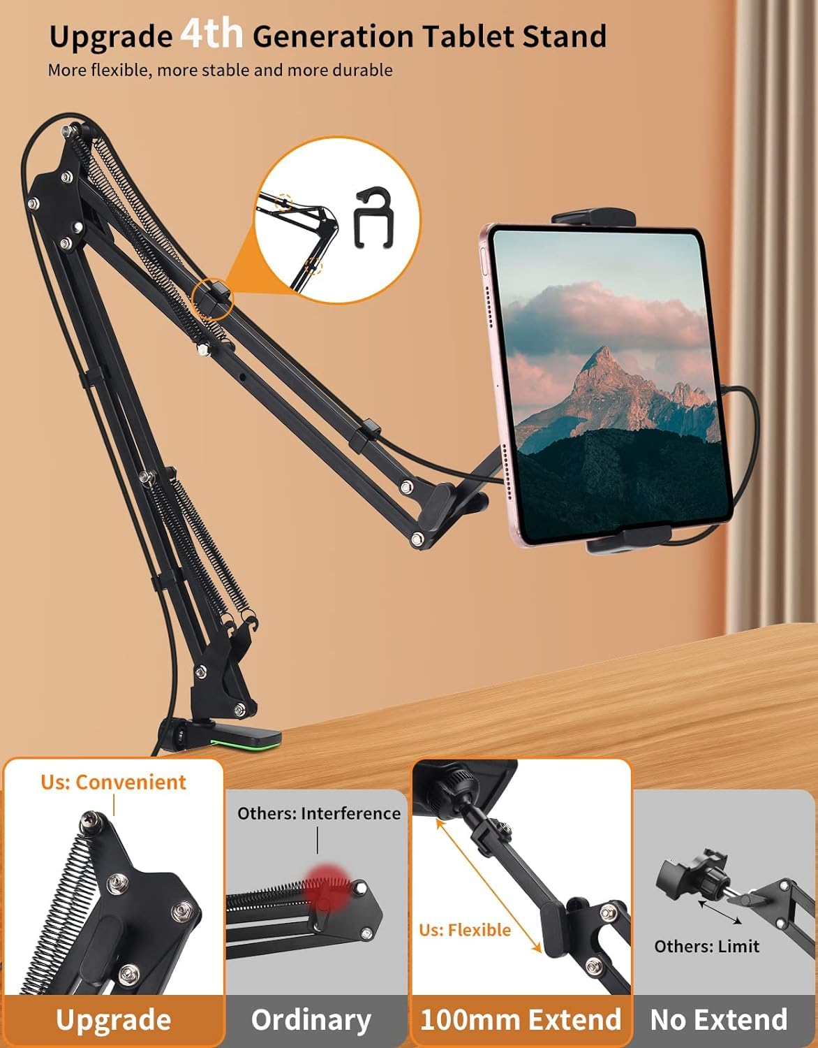 ✅【Adjustable Arm】: Featuring a long lazy arm, this stand offers adjustable angles for a more versatile viewing experience. You can easily adjust the arm to any angle and distance from your work area, allowing for comfortable hands-free phone usage.
