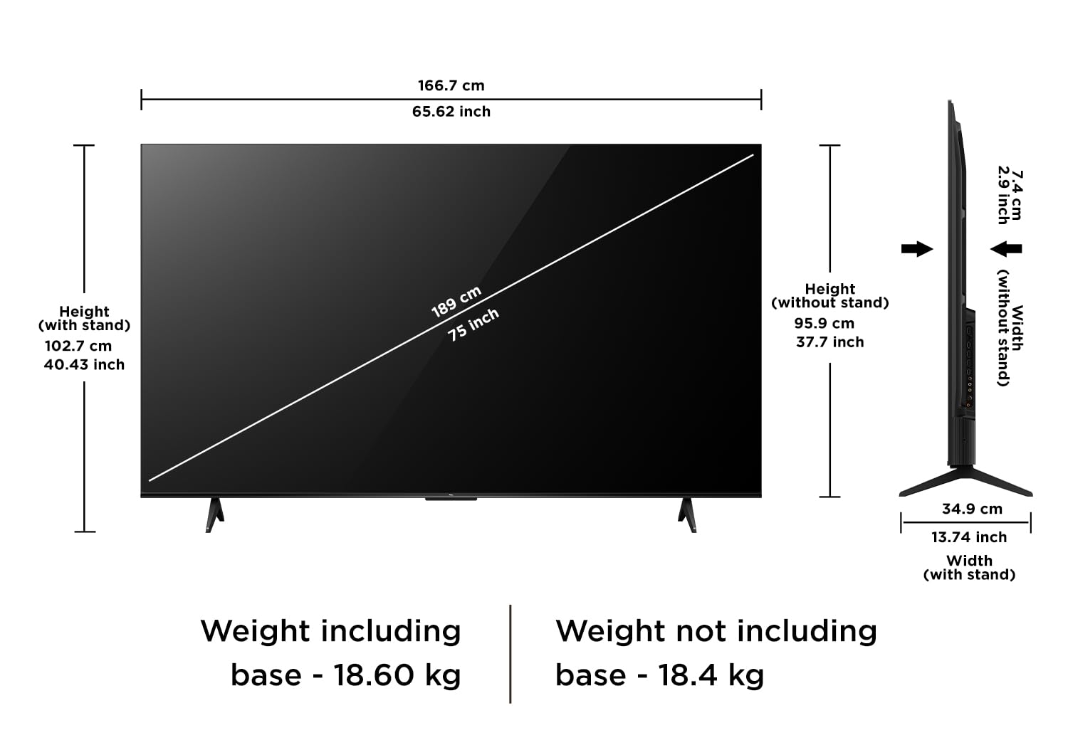 Display: UHD LED Panel | HVA Panel | HDR 10 | AiPQ Processor | 100% Color Volume Plus| 178 Degree Wide Viewing Angle | Micro Dimming | MEMC | Metallic Bezel-Less Design